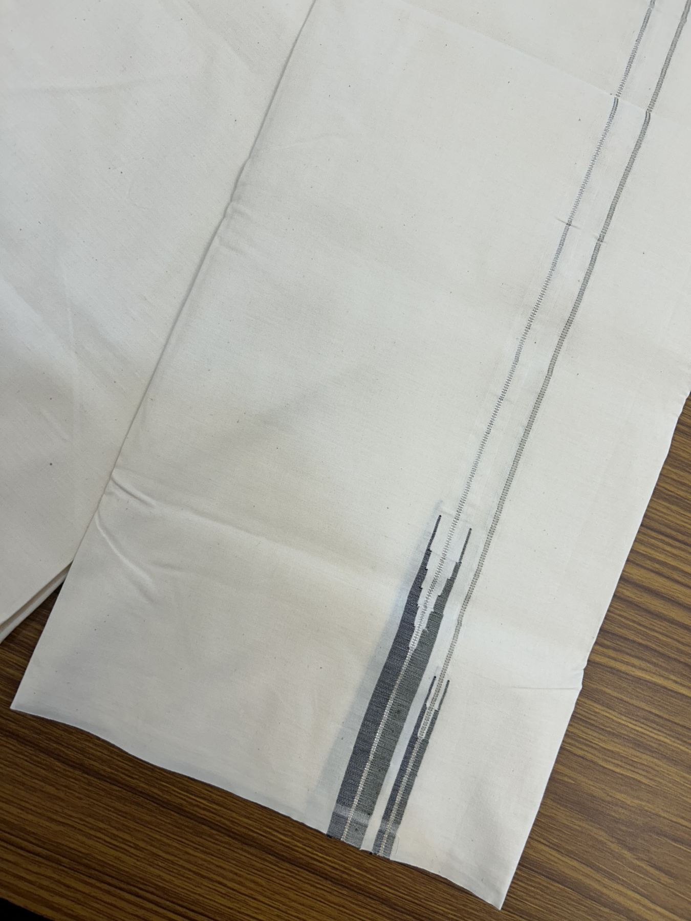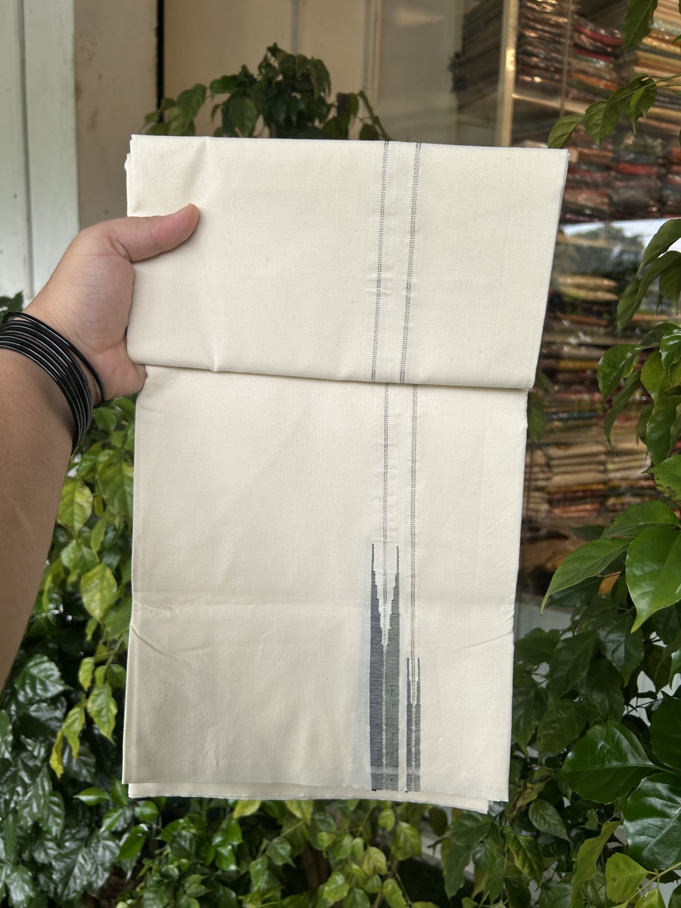 20% Discount! KaithariKada 100% Cotton off white Single - (Unbleached) Mundu/Dhoti Twisted 100s Thread- 100X100 - 0.5 inch Puliyilakkara Silver Kasav Sage Green & Black Chutty kara - 5 KK5325 ASH
