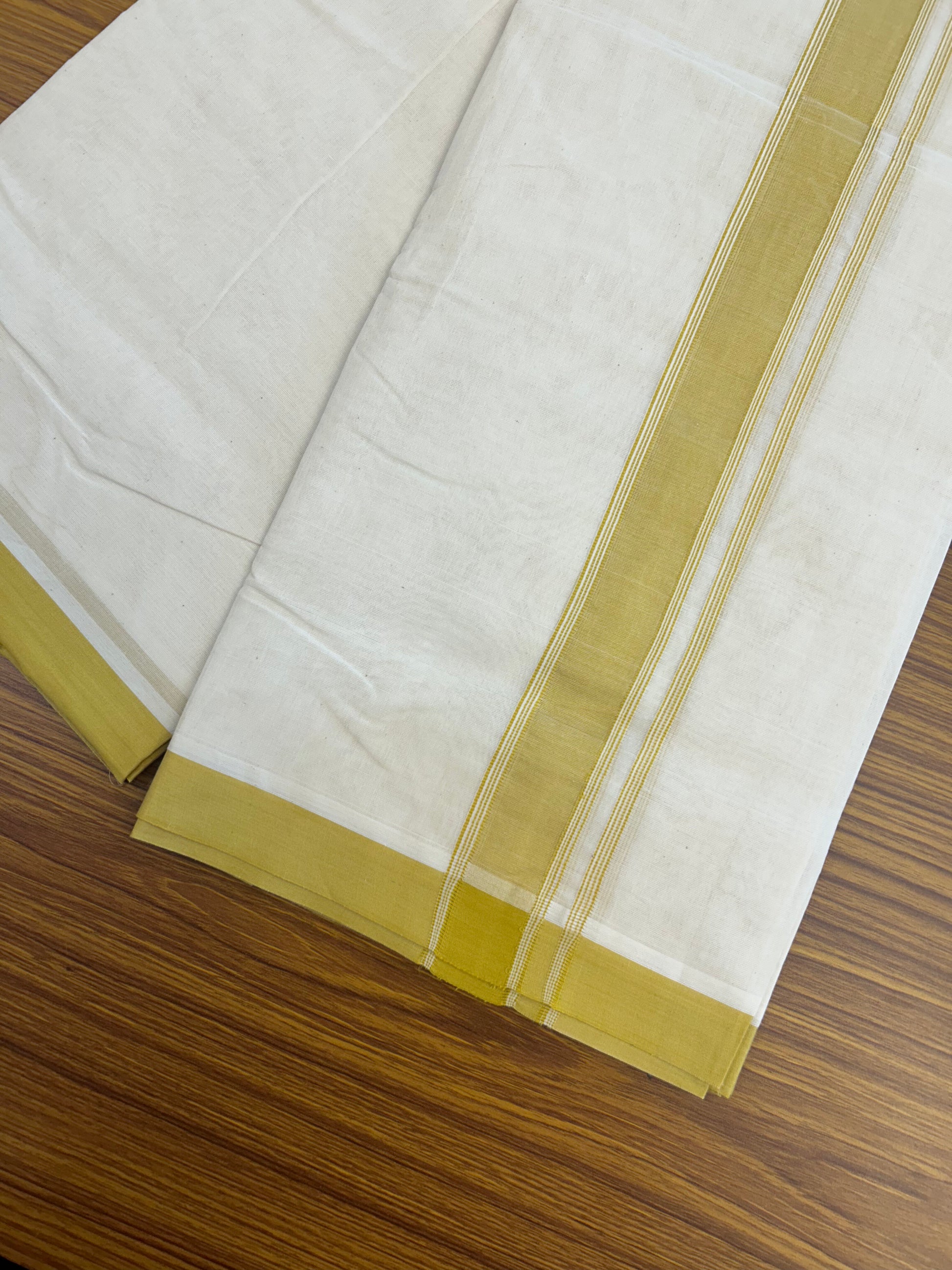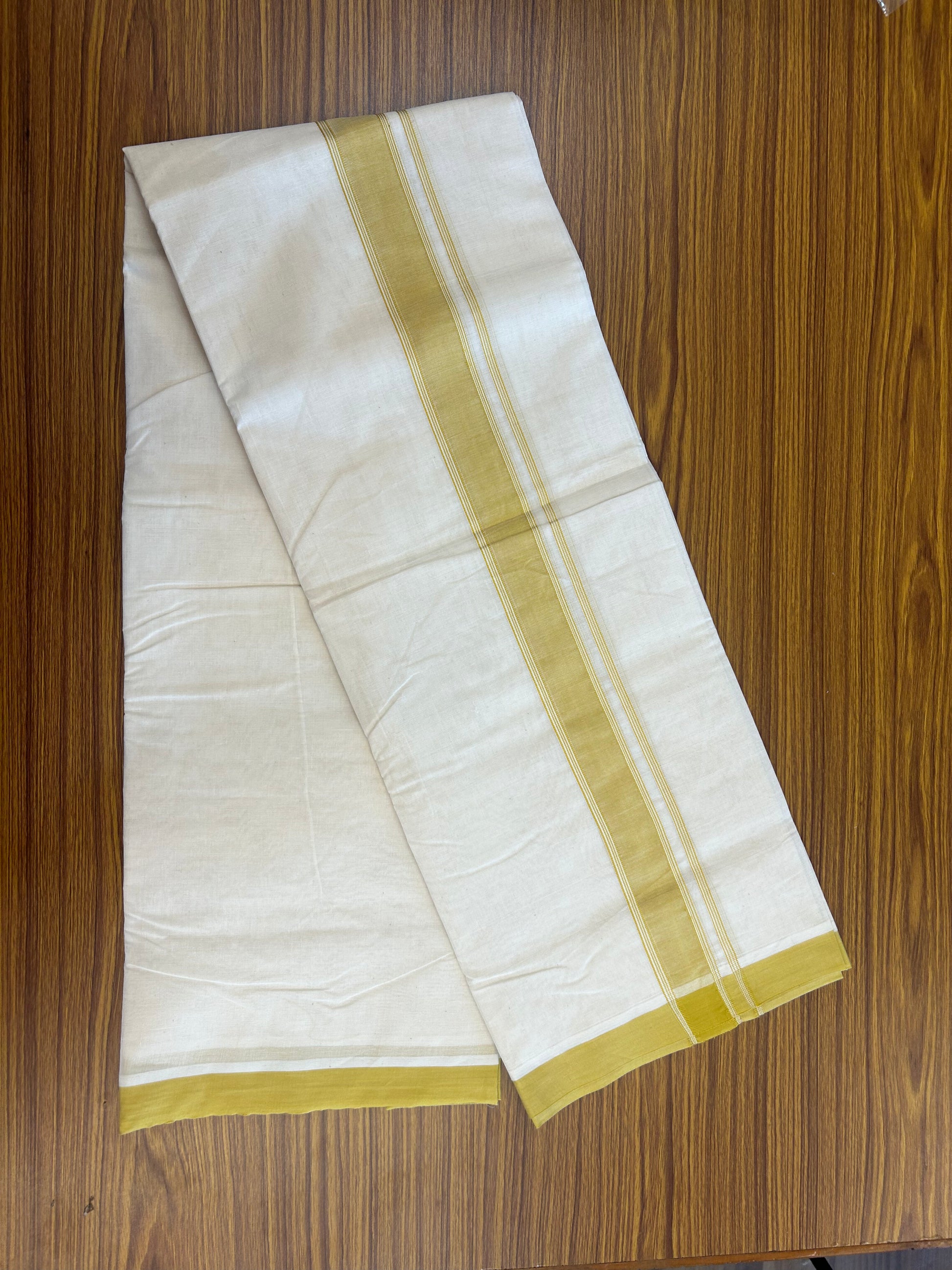 20% Discount KaithariKada Balaramapuram 100% Cotton Double Off white - (Unbleached) - Mundu/Dhoti - 100x80 - 1.5 inch Mustard Yellow Striped Kara - 3.90 mtr (8 Muzham) - 15 KK5346 ASH