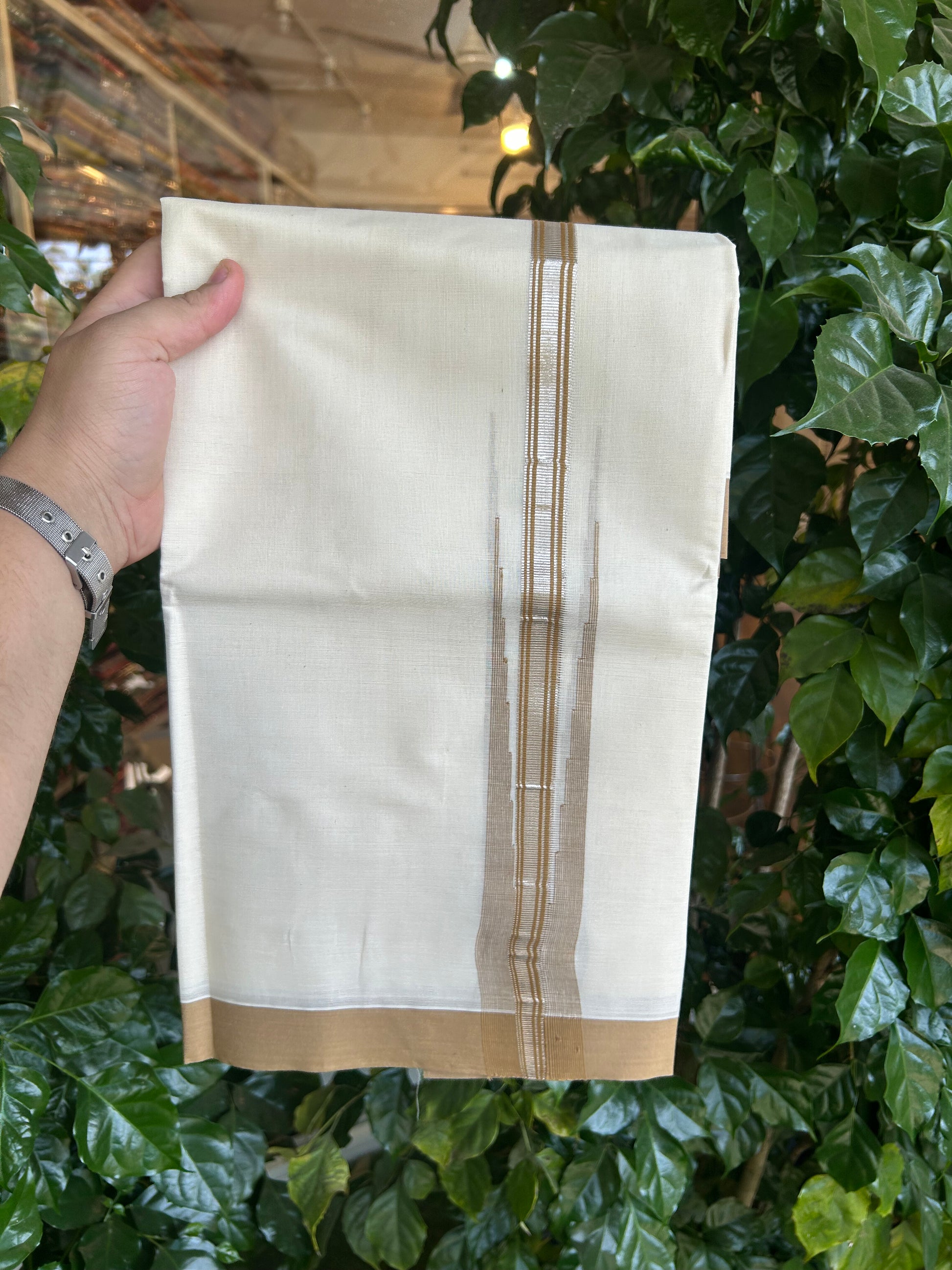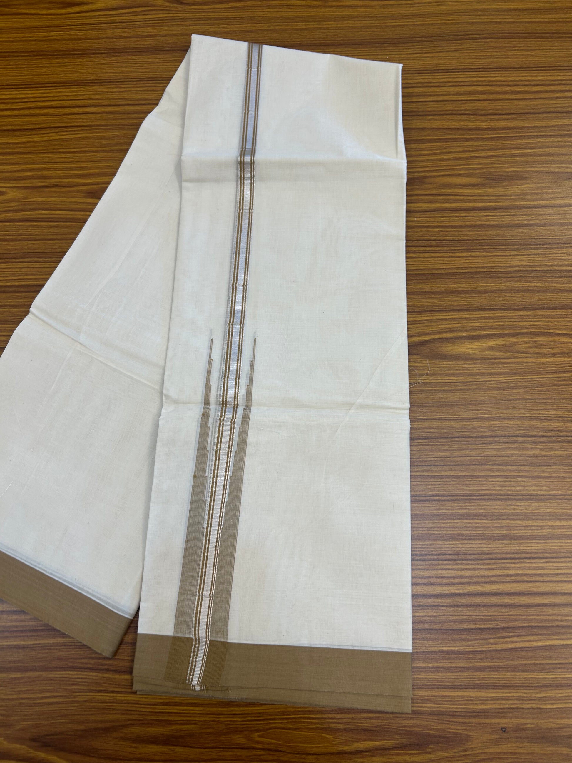 20% Discount ! KaithariKada Balaramapuram 100% Cotton Double Off White (unbleached) Mundu/Dhoti- 100x80- 1.75 inch Puliyilakkara Silver Kasavu & Sand Brown Striped Chutty Kara 4 mtr (8.5 muzham) - 225 KK5361 PMC