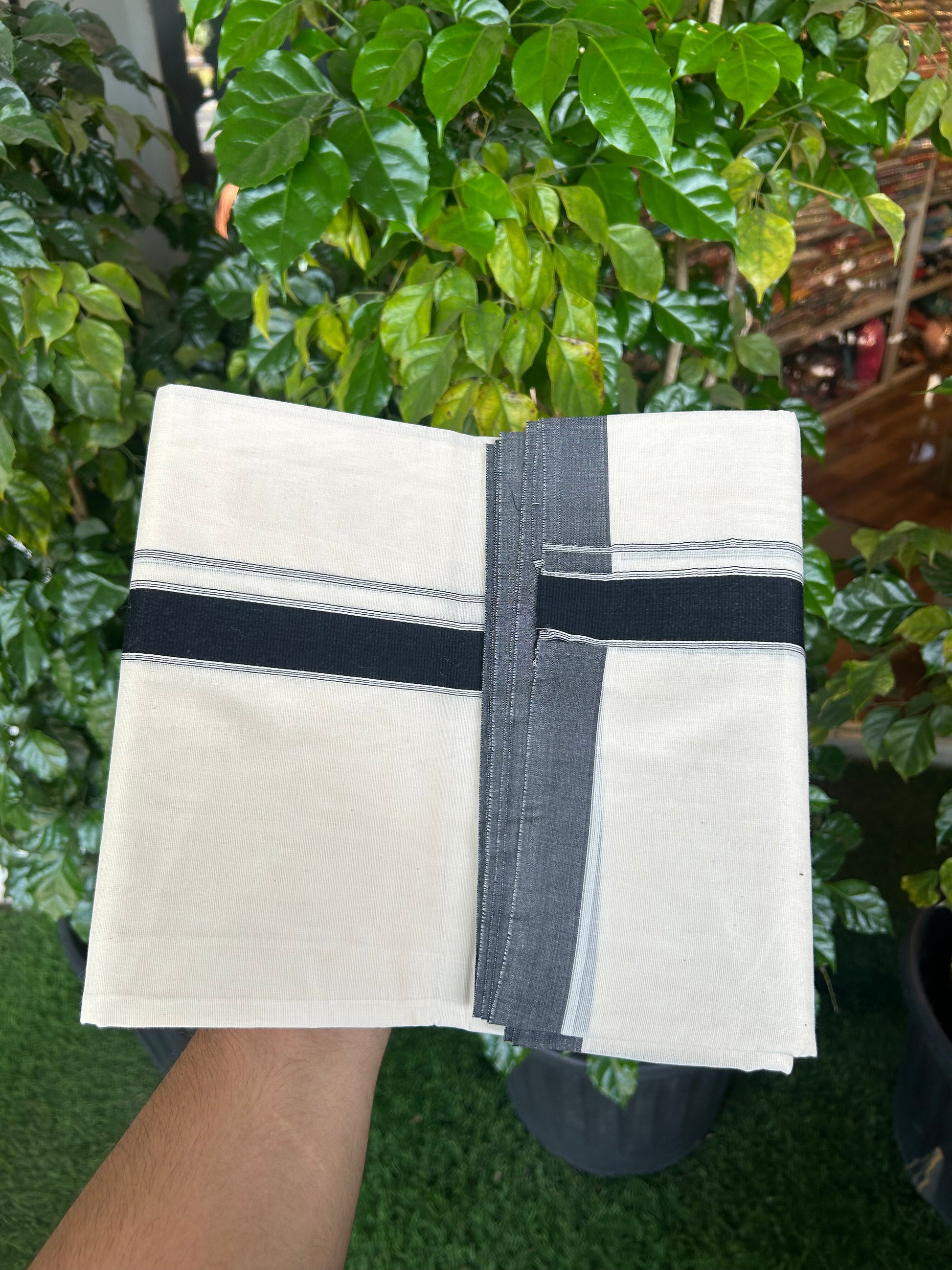 20% Discount KaithariKada Balaramapuram 100% Cotton Double Off white - (Unbleached) - Mundu/Dhoti - 100x80 - 1.25 inch Black Striped Kara - 3.80 mtr (8 Muzham) - 1 KK5347 ASH