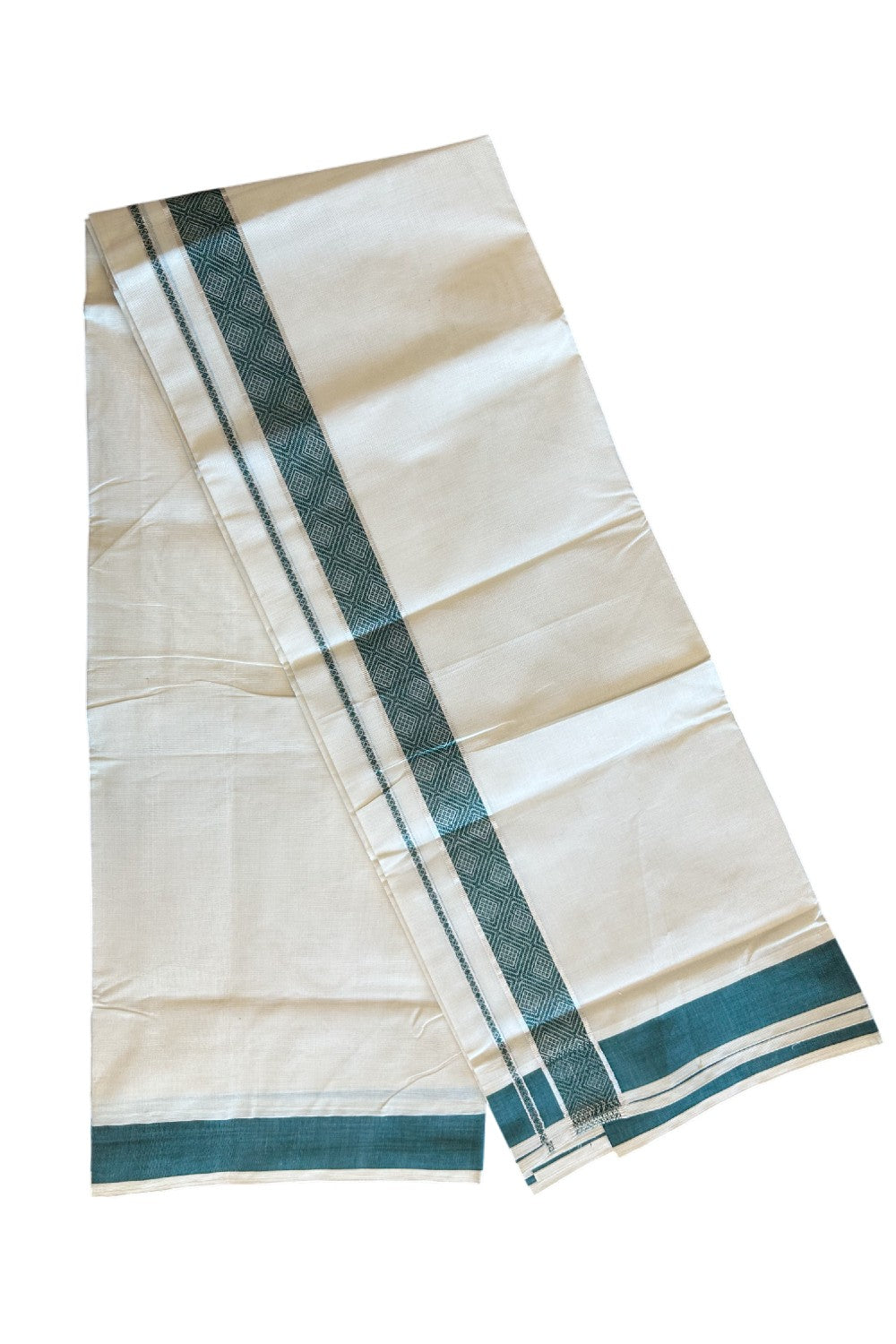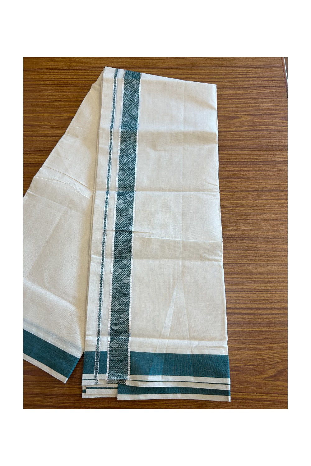 20% DISCOUNT ! KaithariKada Balaramapuram 100% Cotton Double off white (Unbleached) Mundu/Dhoti - 100X90 - 2.25 inch Silver kasavu & Dark Green design kara - 30KK5113PMC