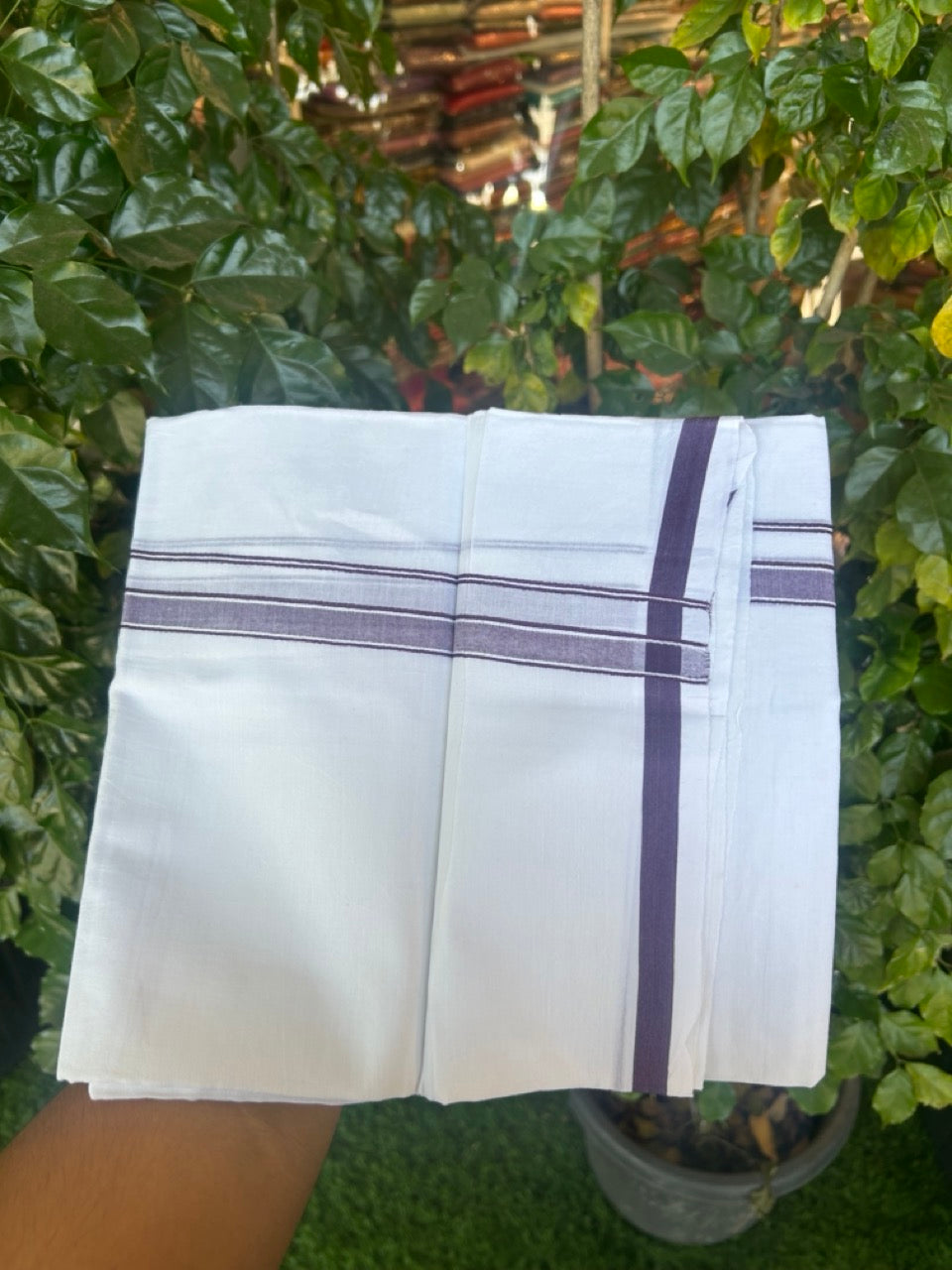 14% Discount! KaithariKada Balaramapuram 100% Cotton Double Pure white Mundu/Dhoti- 100x100 - 0.5 inch Violet Shaded Striped kara - 3.90mtr ( 8 muzham) - 63 KK5279 CKS