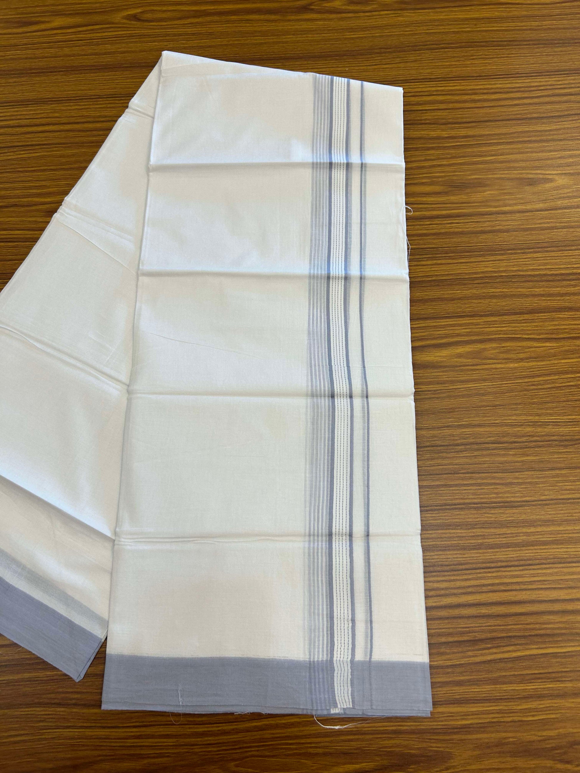 20% Discount!! KaithariKada Balaramapuram 100% Cotton Double Pure White Mundu/Dhoti - 100x100 - 1.25 inch Lavender Blue Striped Kara 3.96 mtr (8 muzham) - 9 KK5309 GAN