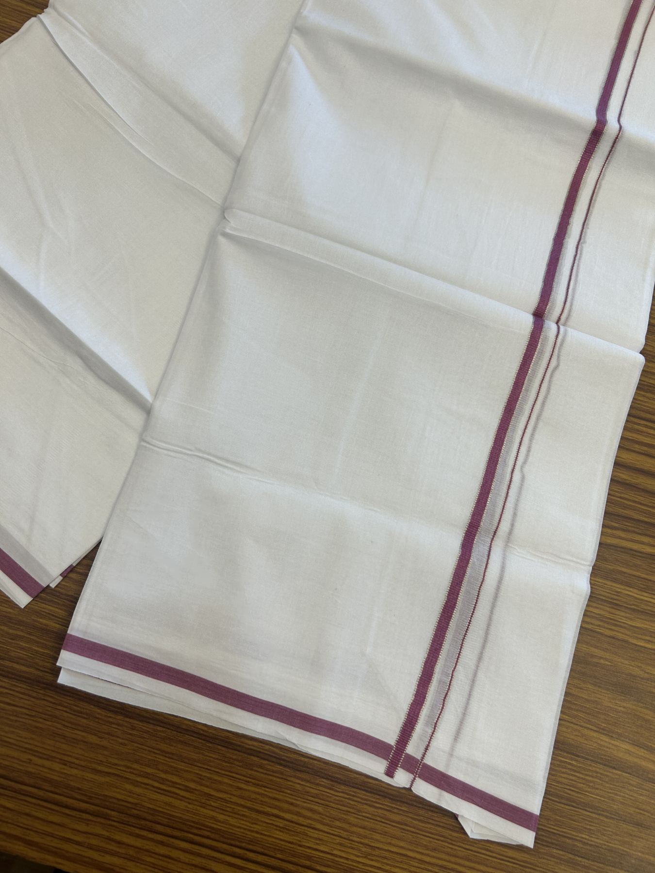 20% Discount! KaithariKada Balaramapuram 100% Cotton Double Pure white Mundu/Dhoti- 100x80 - 0.25 inch Silver Kasav Magenta kara - 3.75 mtr ( 8 muzham) - 6 KK5315 VAS