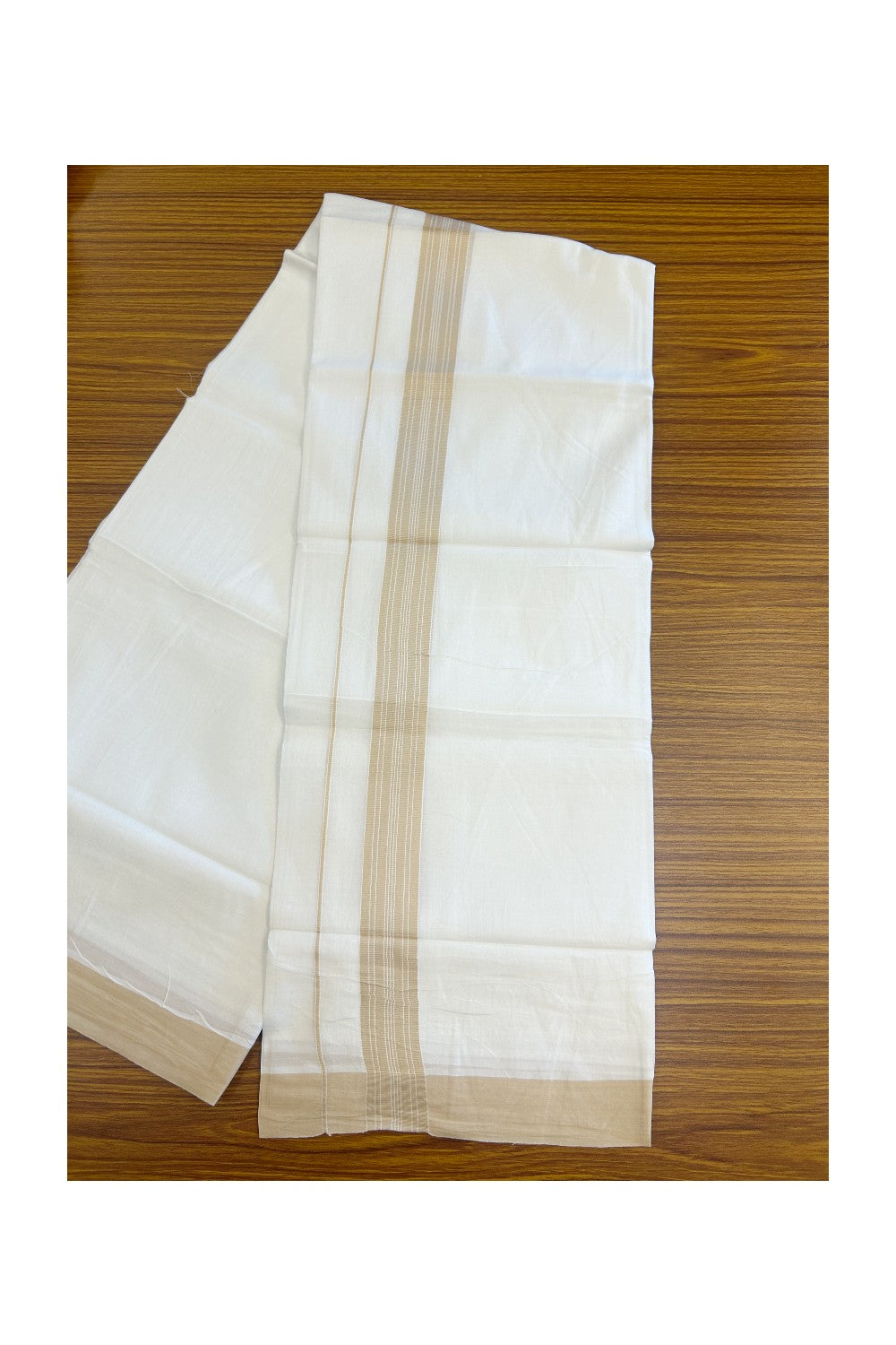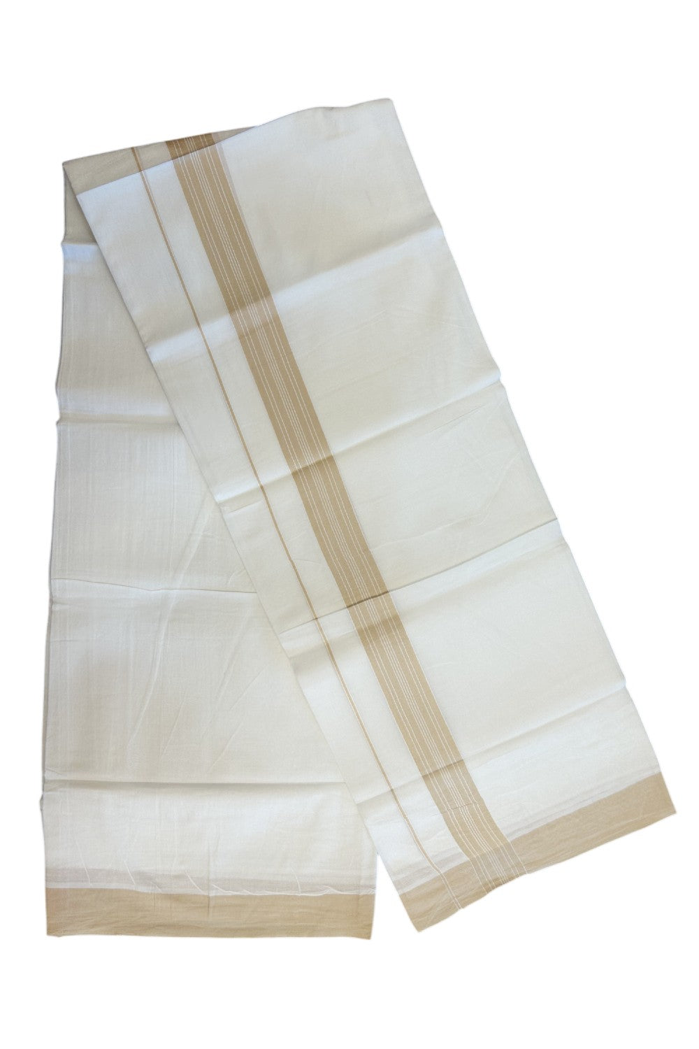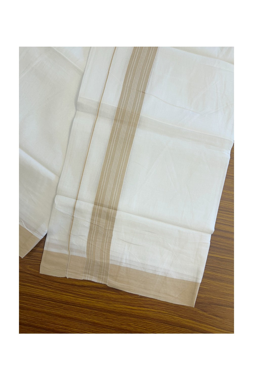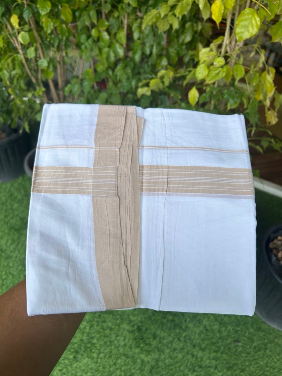 20% DISCOUNT! KaithariKada Balaramapuram 100% Cotton Double PURE white Mundu/Dhoti - 100x80 - 1.25 Inch Sand Brown Center Striped Kara - 15KK5135GAN