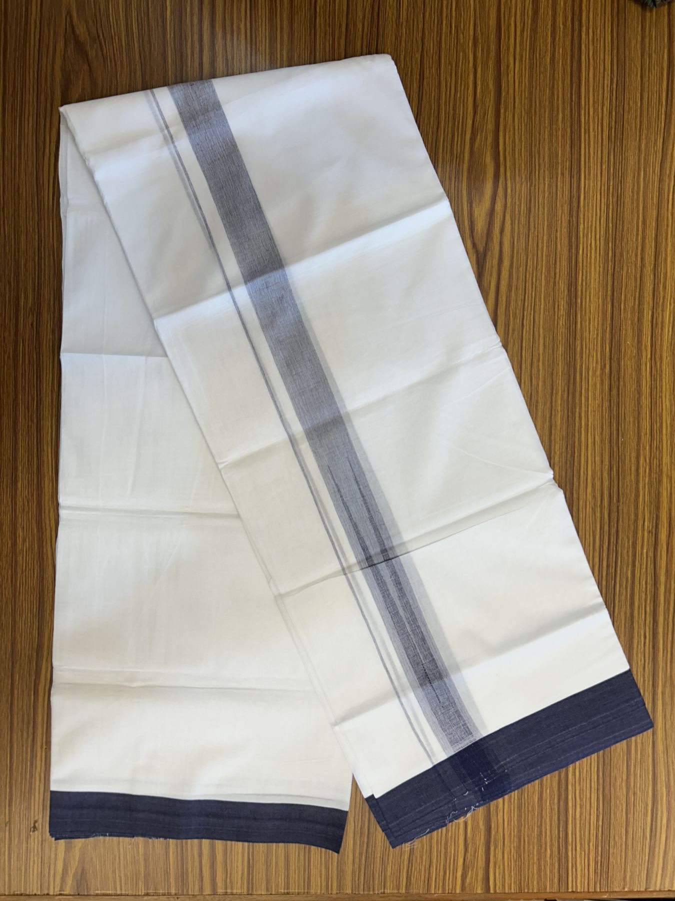 20% Discount! KaithariKada Balaramapuram 100% Cotton Double Pure white Mundu/Dhoti- 100X80 - 1.25 inch Puliyilakkara Navy Blue Chutty kara - 4 mtr ( 8.5 muzham) - 6 KK5341 VIN