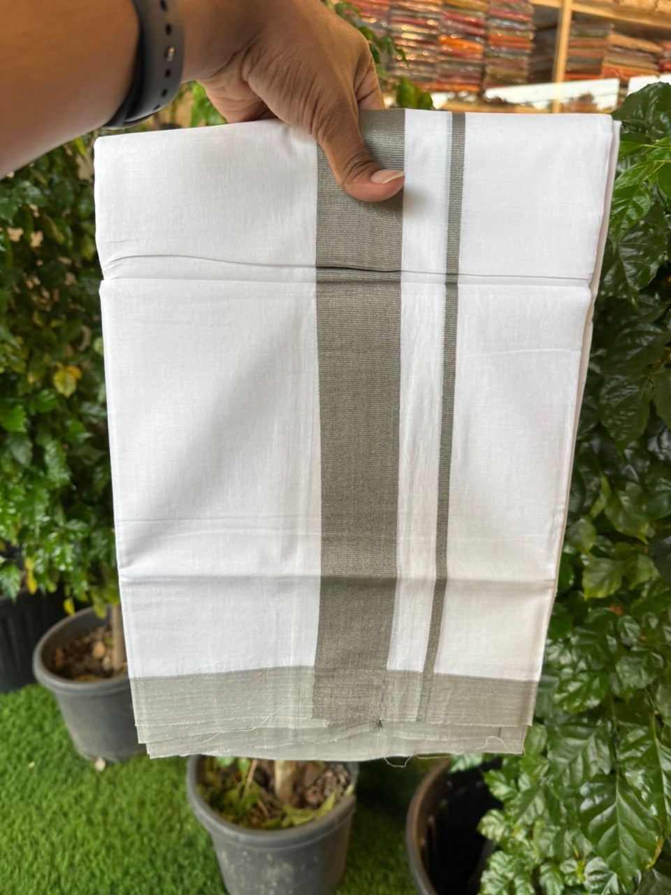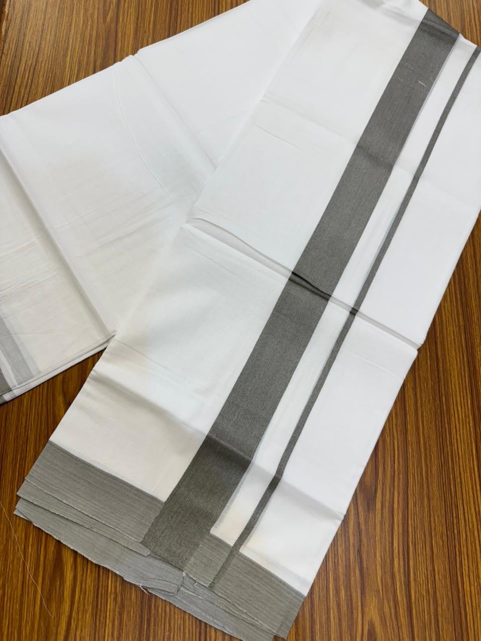 20% Discount ! KaithariKada Balaramapuram 100% Cotton Double Pure white Mundu/Dhoti- 100x80 - 1.5 inch Ash Grey Kara - 3.90mtr ( 8 muzham) - 36 KK5251 PMC