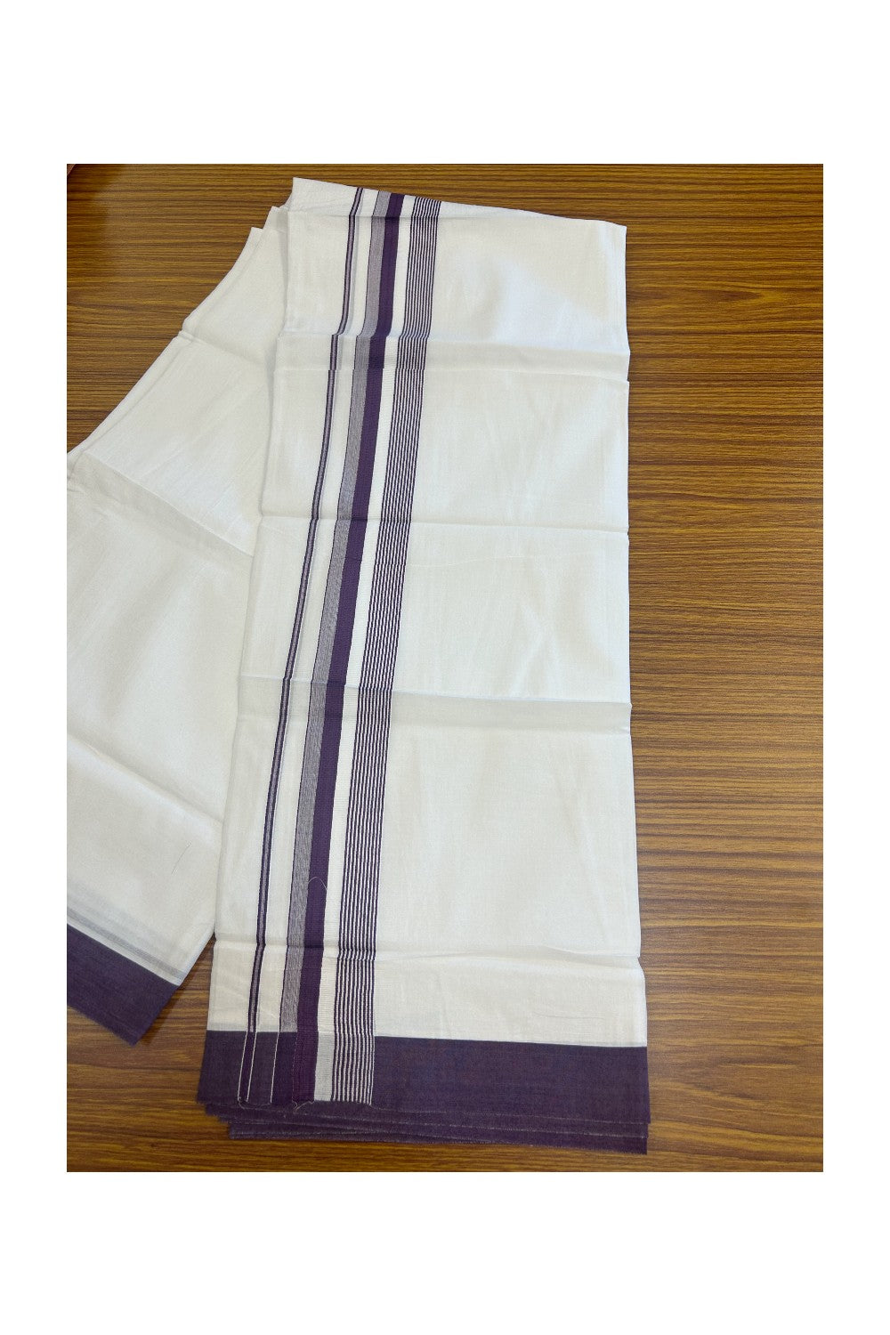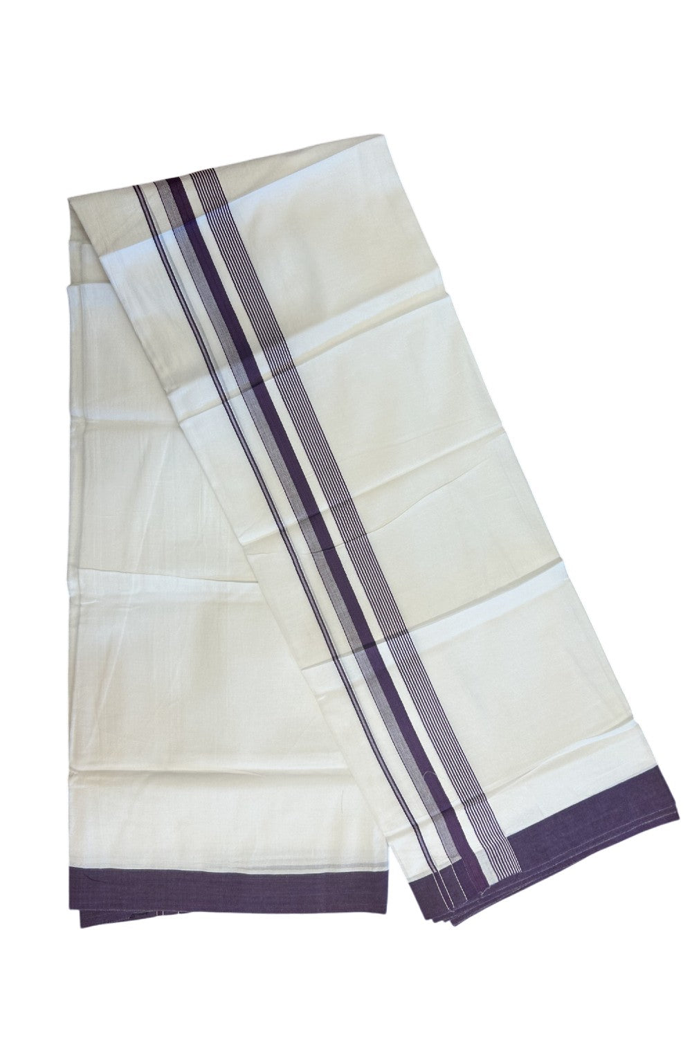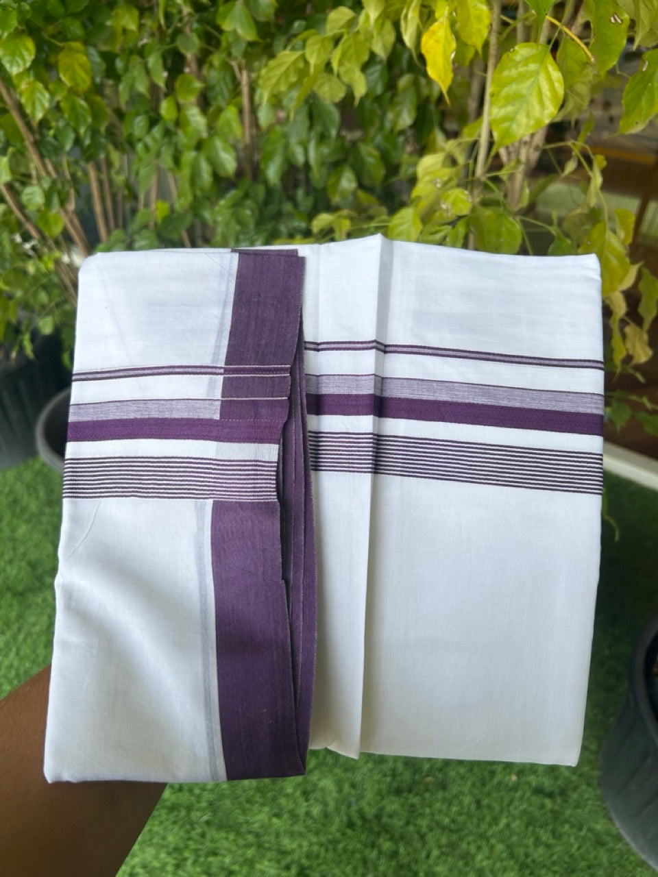 20% DISCOUNT! KaithariKada Balaramapuram 100% Cotton Double PURE white Mundu/Dhoti - 100x80 - 1.75 Inch Violet Striped Kara - 8KK5135GAN