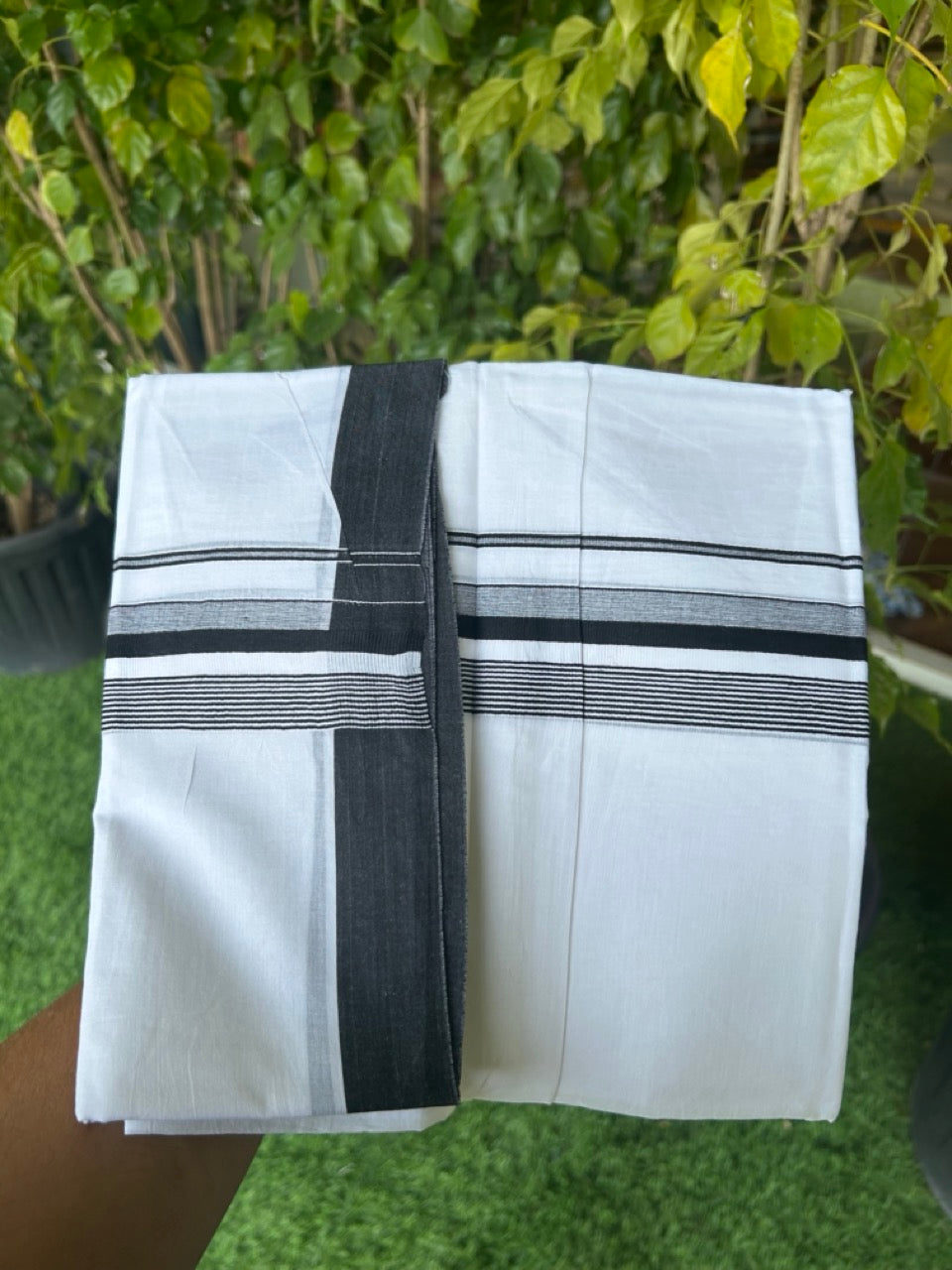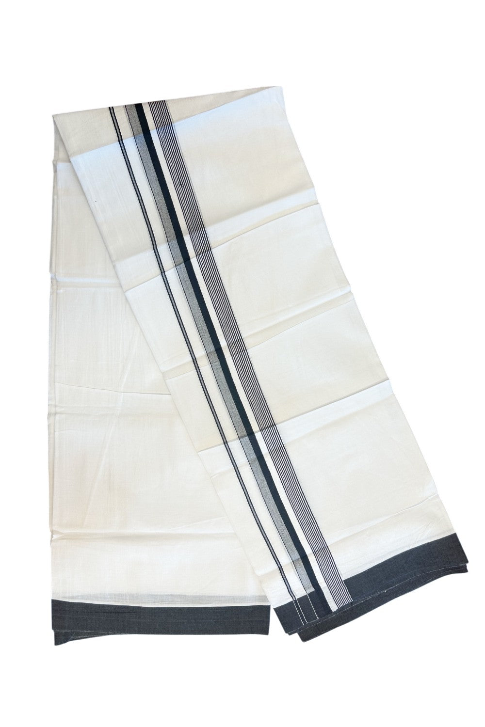 20% DISCOUNT! KaithariKada Balaramapuram 100% Cotton Double PURE white Mundu/Dhoti - 100x80 - 1.75 Inch Black Striped Kara - 9KK5135GAN
