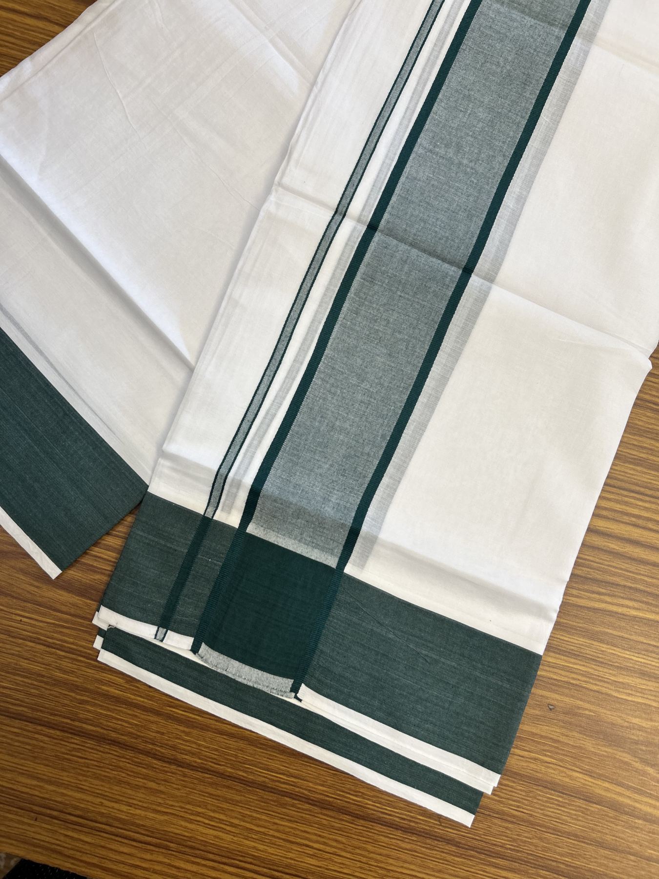 20% Discount! KaithariKada Balaramapuram 100% Cotton Double Pure white Mundu/Dhoti- 100X80 - 2.25 inch Green kara - 4 mtr ( 8.5 muzham) - 2 KK5341 VIN