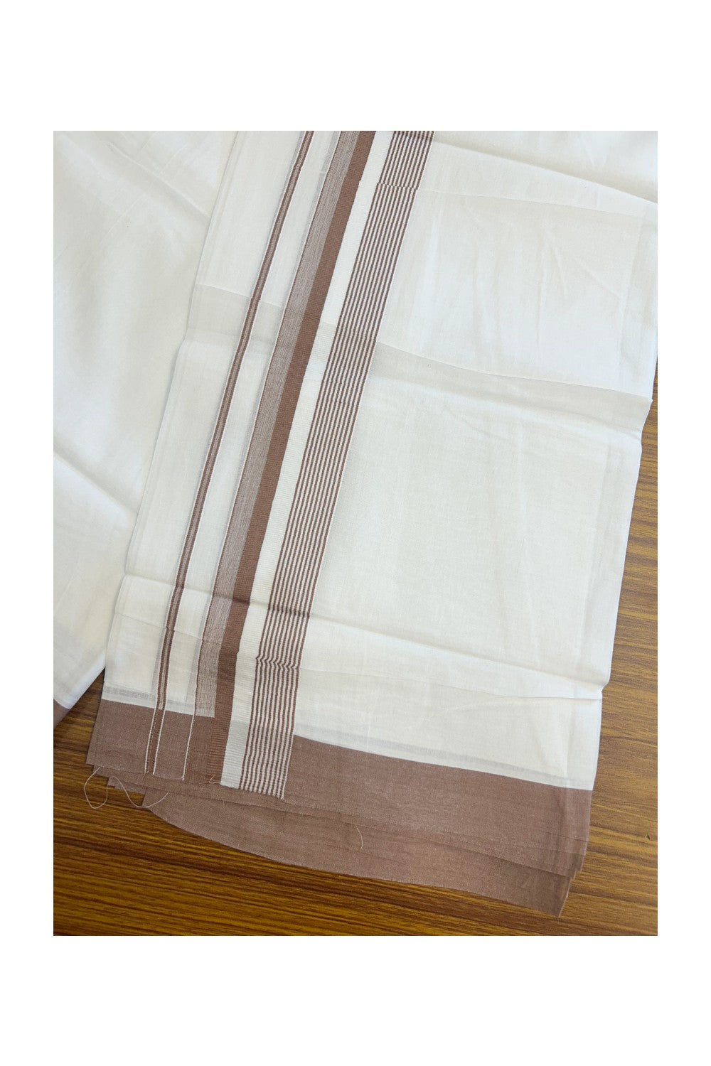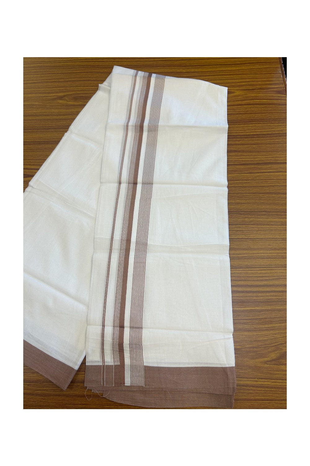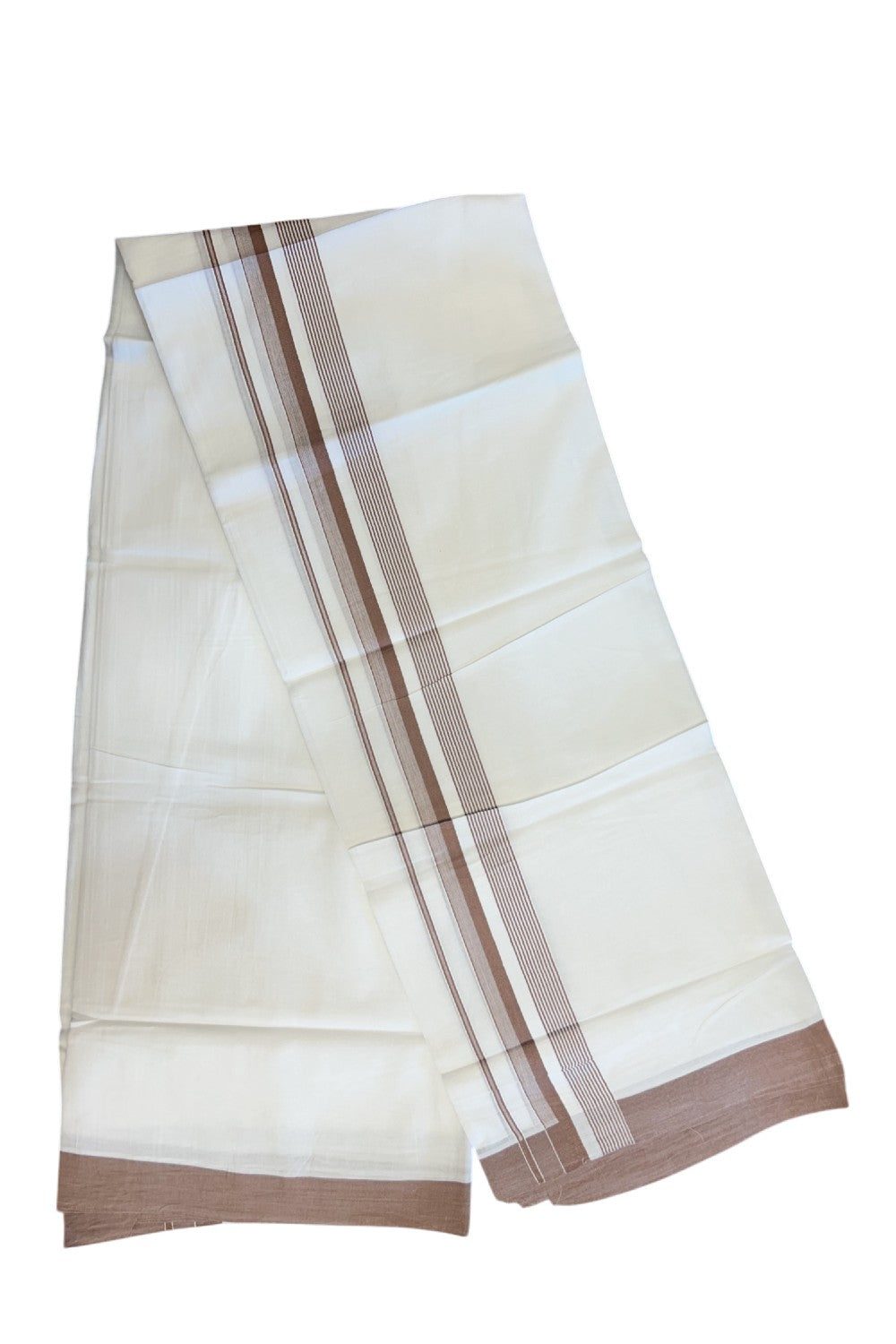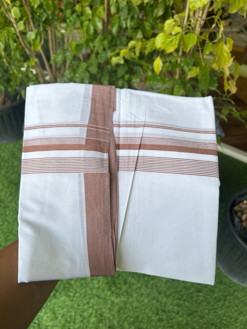 20% DISCOUNT! KaithariKada Balaramapuram 100% Cotton Double PURE white Mundu/Dhoti - 100x80 - 1.75 Inch Brown Striped Kara - 6KK5135GAN