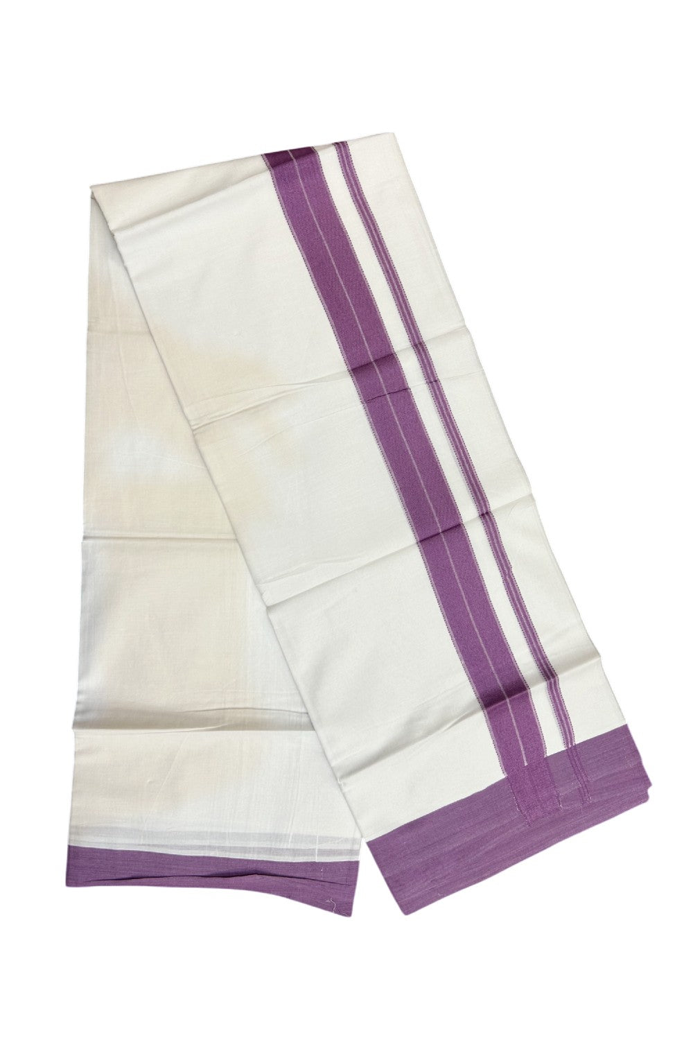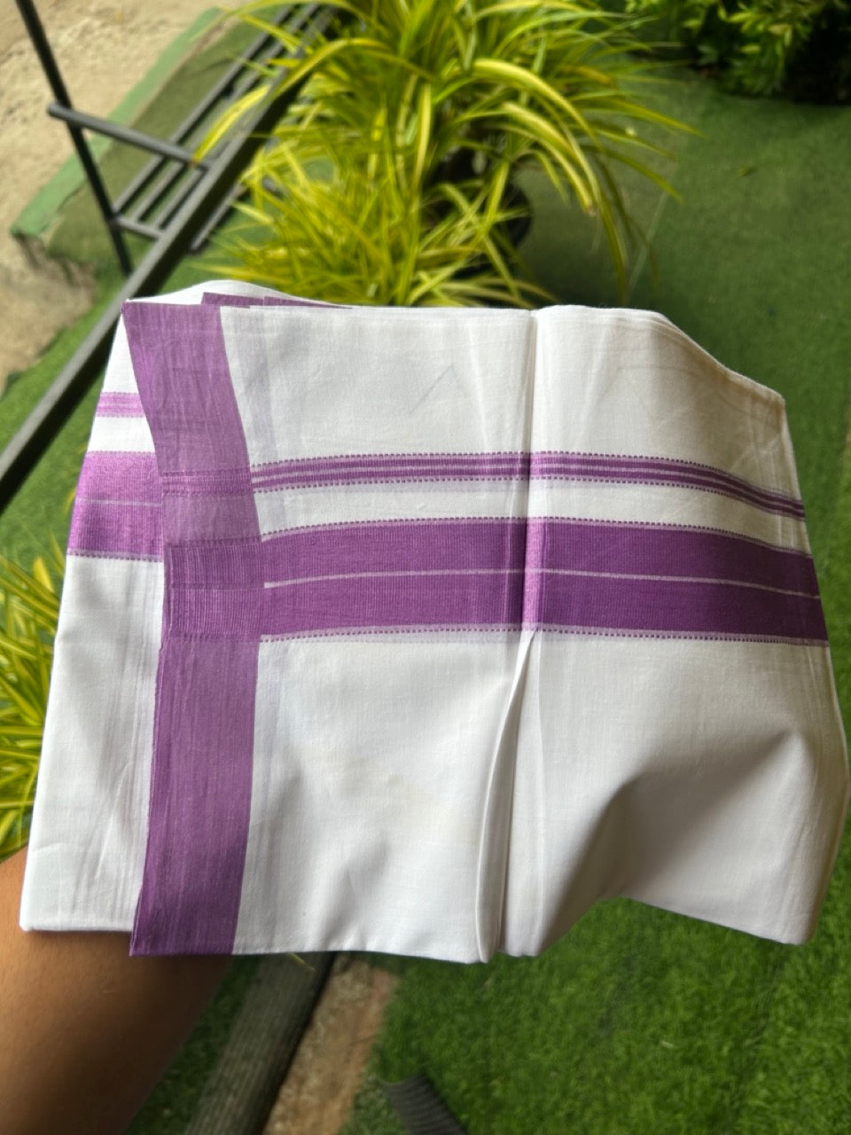 21% DISCOUNT! KaithariKada Balaramapuram 100% Cotton Double PURE white Mundu/Dhoti-100x80 - 1.75 Inch Magenta Design Kara - 30KK5143PMC