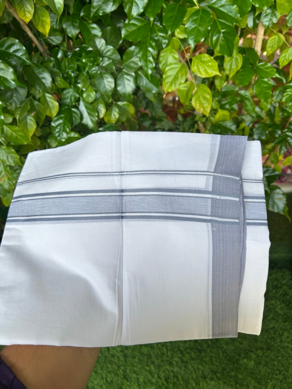 20% DISCOUNT! KaithariKada Balaramapuram 100% Cotton Double Pure white Mundu/Dhoti-( 60s ) - 1.5 inch Lavender Blue Shaded Striped Kara - 3.86mtr ( 8 muzham) - 17KK5227 PMC