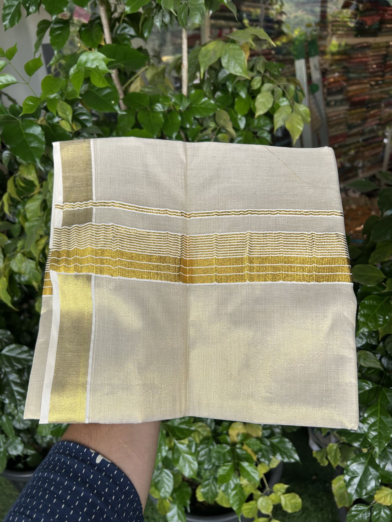 20% Discount! KaithariKada Balaramapuram 100% Cotton - Gold Kasav Tissue Double Dhoti/Mund- 80X90 - 2 inch Gold Kasav Stripes Kara 4 mtr (8.5 muzham) - 2 KK5341 VIN