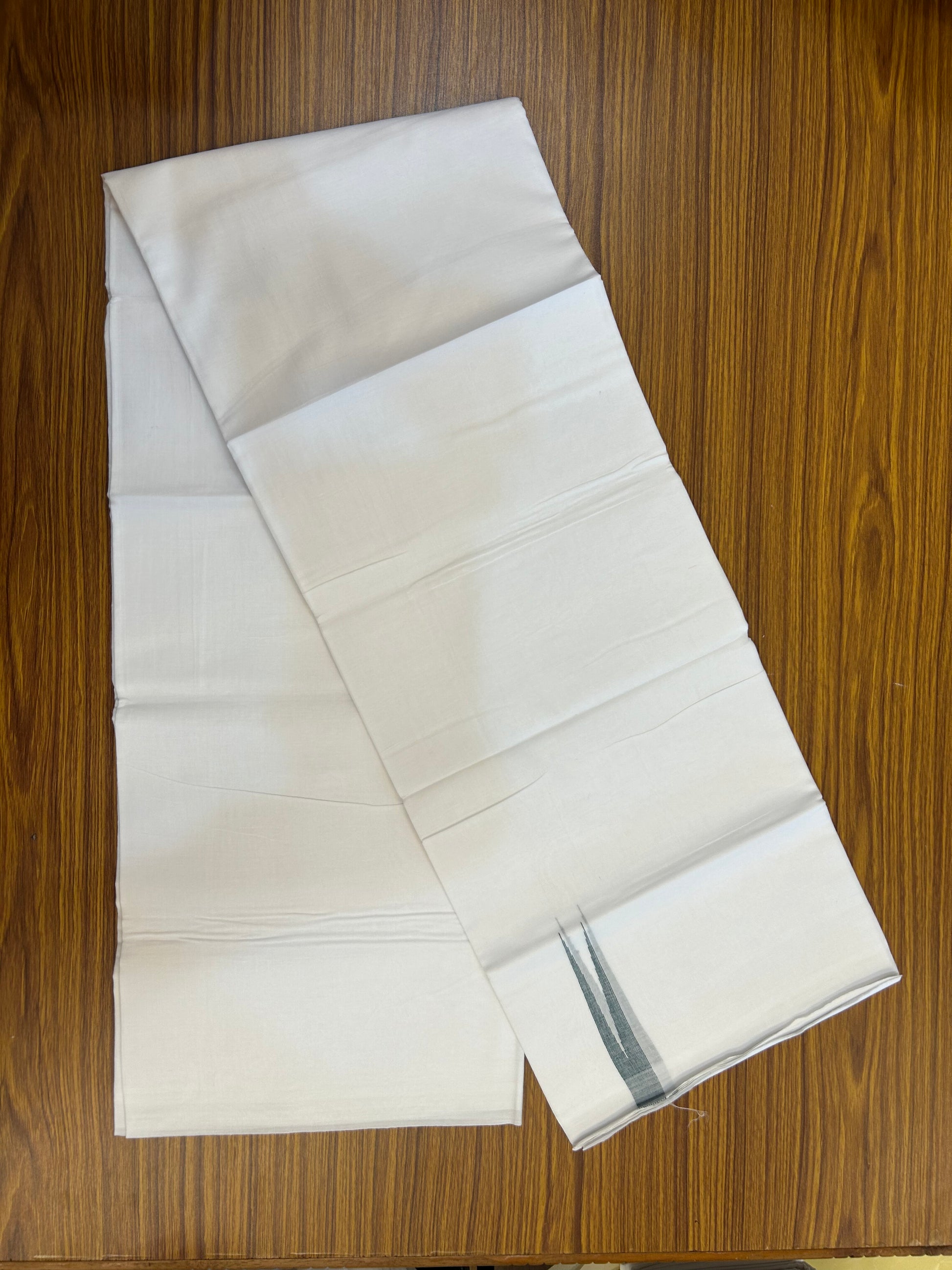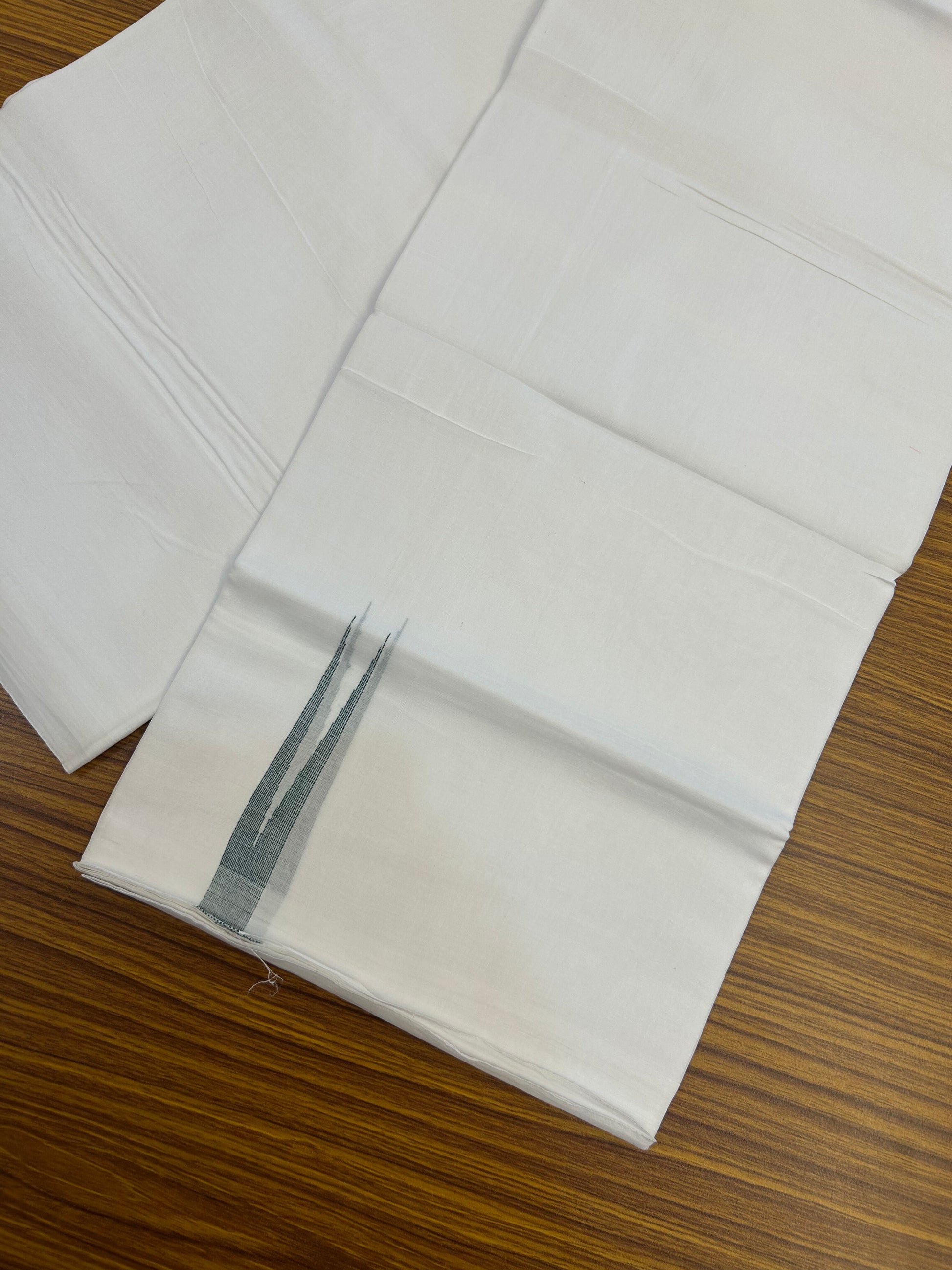 20% Discount !! KaithariKada Balaramapuram 100% Cotton Pure white Double Mundu/Dhoti - (100x80)s - 2 cm Dark Green Stripes Chutty kara 3.80 mtr (8 muzham) - 12 KK5349 CKS