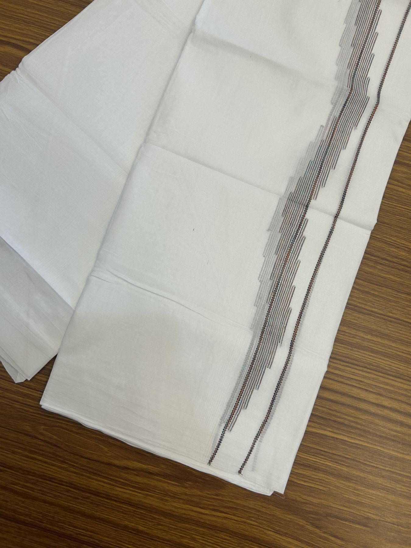 20% Discount ! Kaitharikada Balaramapuram 100% Cotton Pure White Double Mundu/Dothi - 100x80 - 0.75 inch Multi Colour Striped Jacquard Design Kara 3.80 mtr (8 muzham) - 19 KK5334 THI
