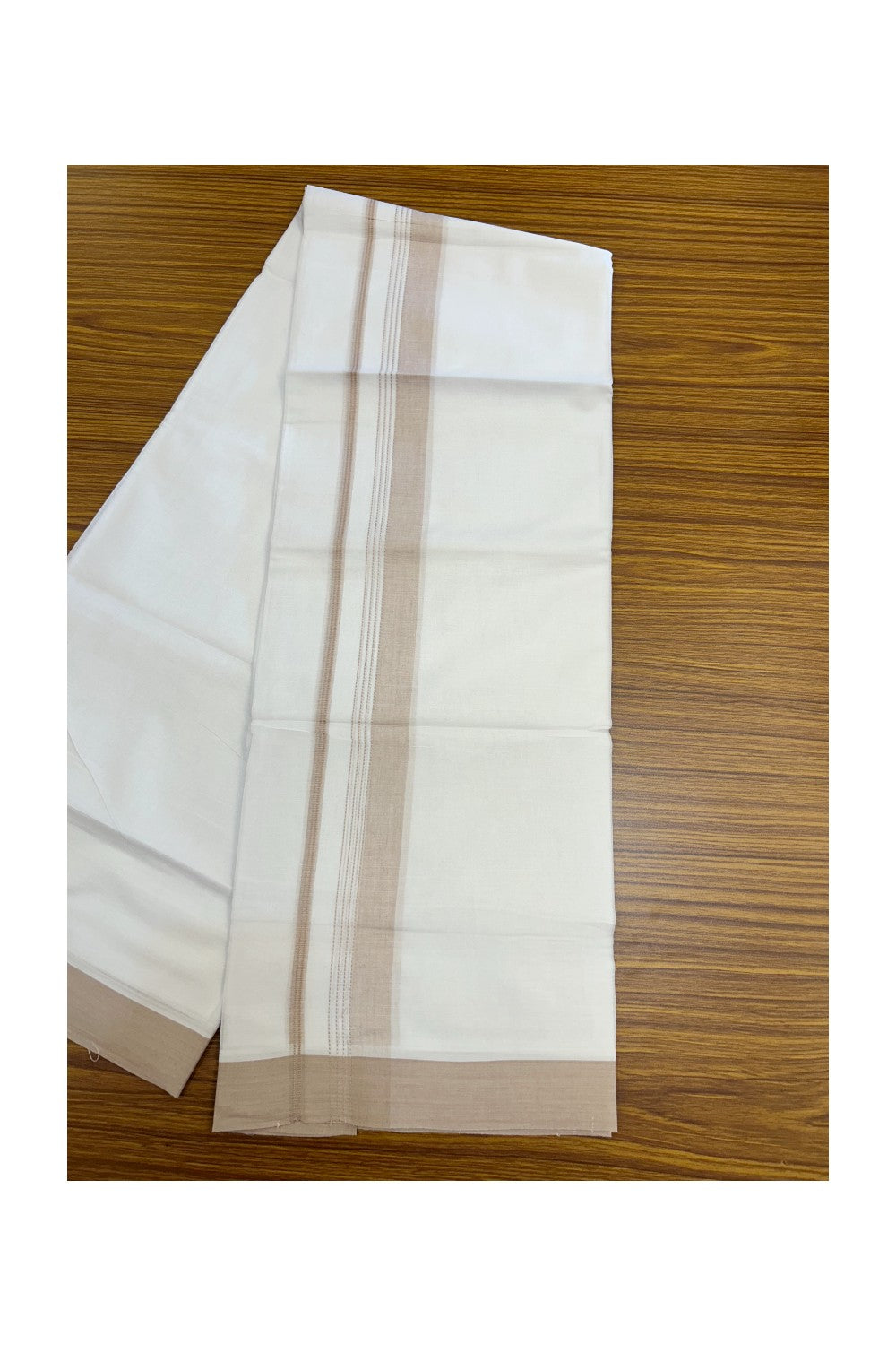 20% Discount ! Kaitharikada Balaramapuram 100% Cotton PURE WHITE Double Mundu/Dothi - 100x80 - 1.5 inch Beige Light Brown Striped Kara - 17KK5183VIN