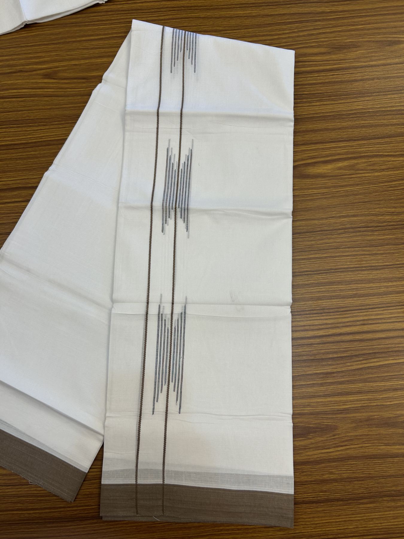 20% Discount ! Kaitharikada Balaramapuram 100% Cotton Pure White Double Mundu/Dothi - 100x80 - 1.5 inch Brown & Multi Colour Stripes Design Kara 3.80 mtr (8 muzham) - 12 KK5323 THI