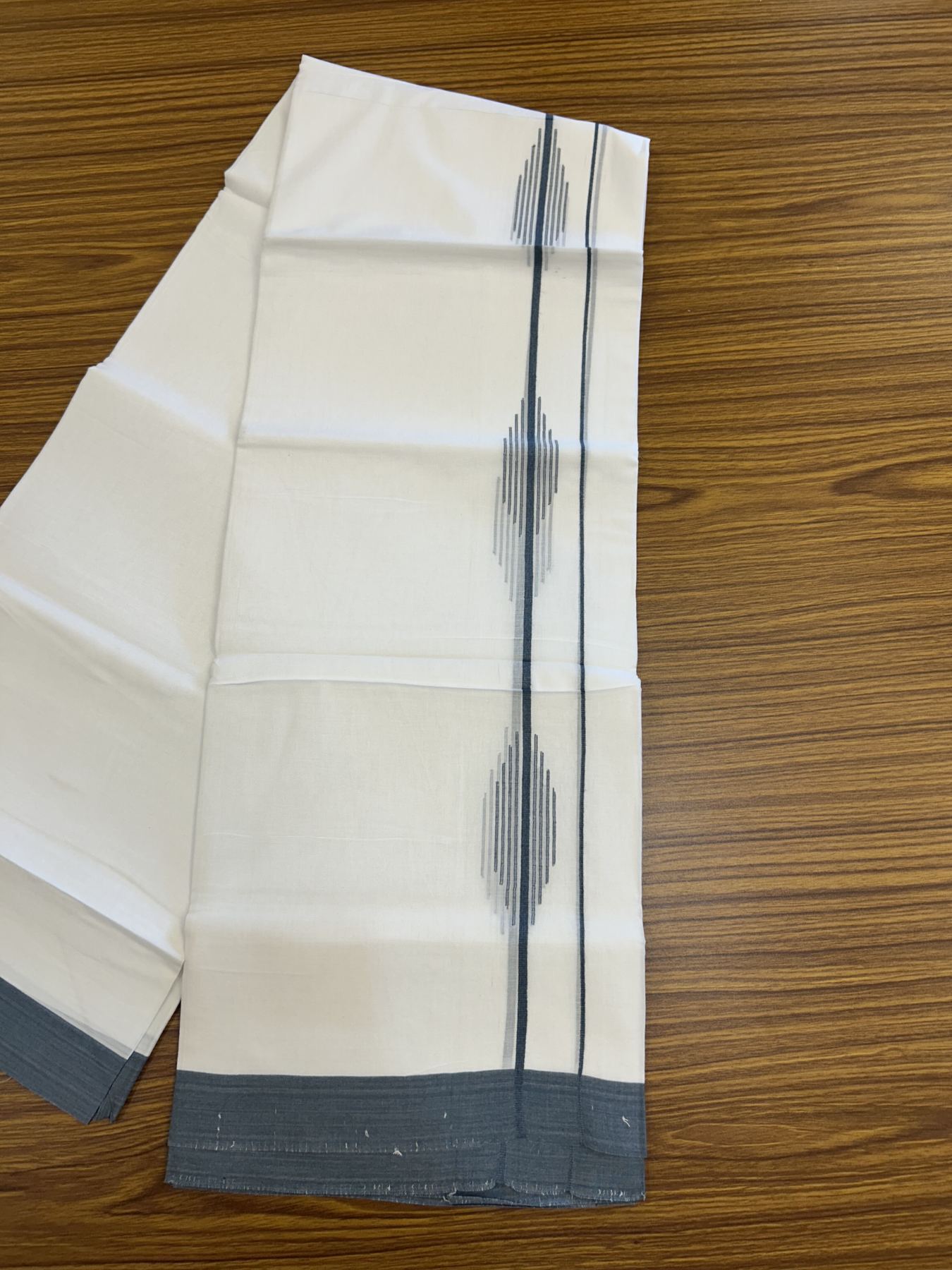 20% Discount ! Kaitharikada Balaramapuram 100% Cotton Pure White Double Mundu/Dothi - 100x80 - 1.5 inch Ash Blue Stripes Design Kara 3.80 mtr (8 muzham) - 39 KK5319 THI
