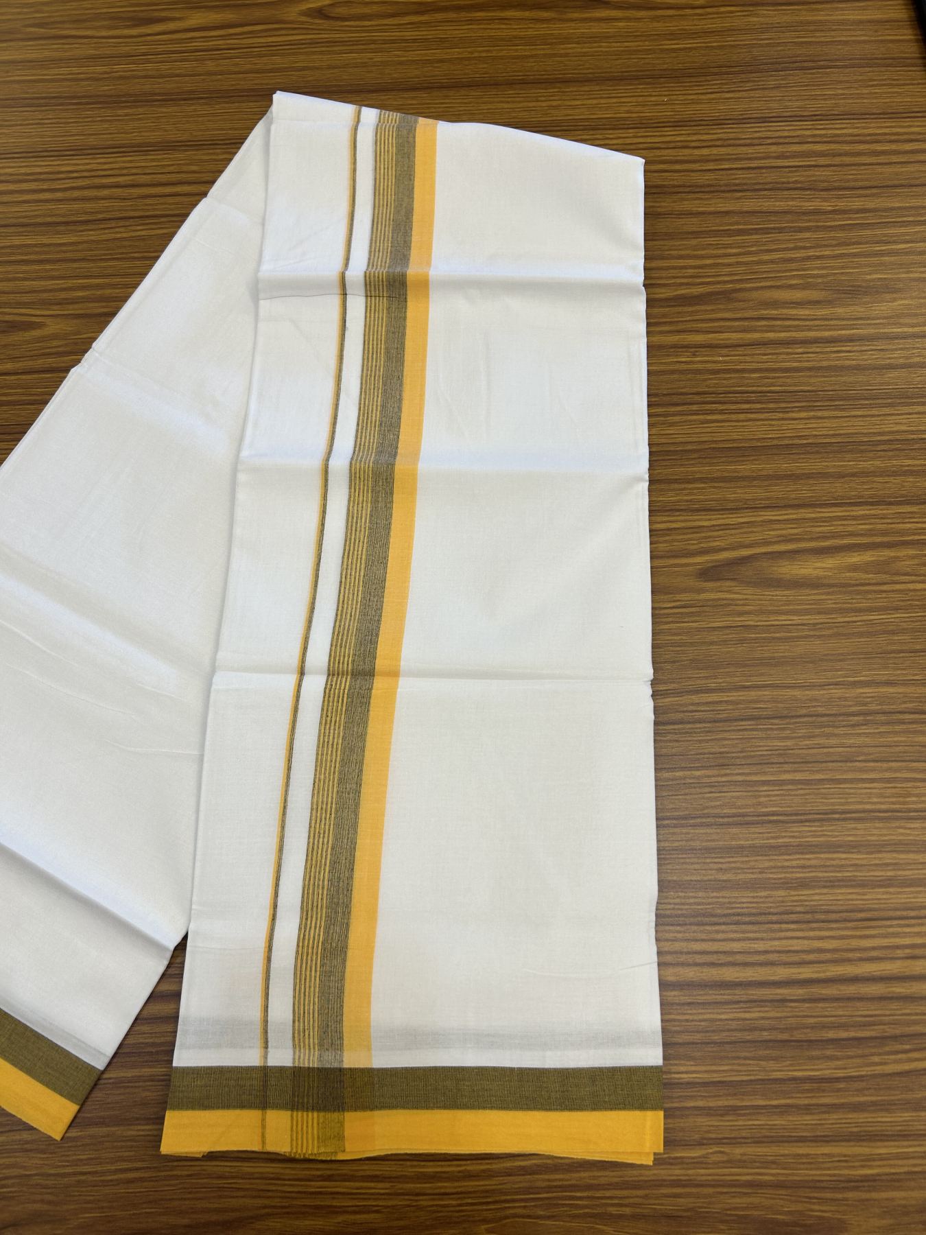 20% Discount ! Kaitharikada Balaramapuram 100% Cotton Pure White Double Mundu/Dothi - 100x80 - 1.5 inch Light Orange & Black Striped Kara 3.80 mtr (8 muzham) - 11 KK5323 VAS