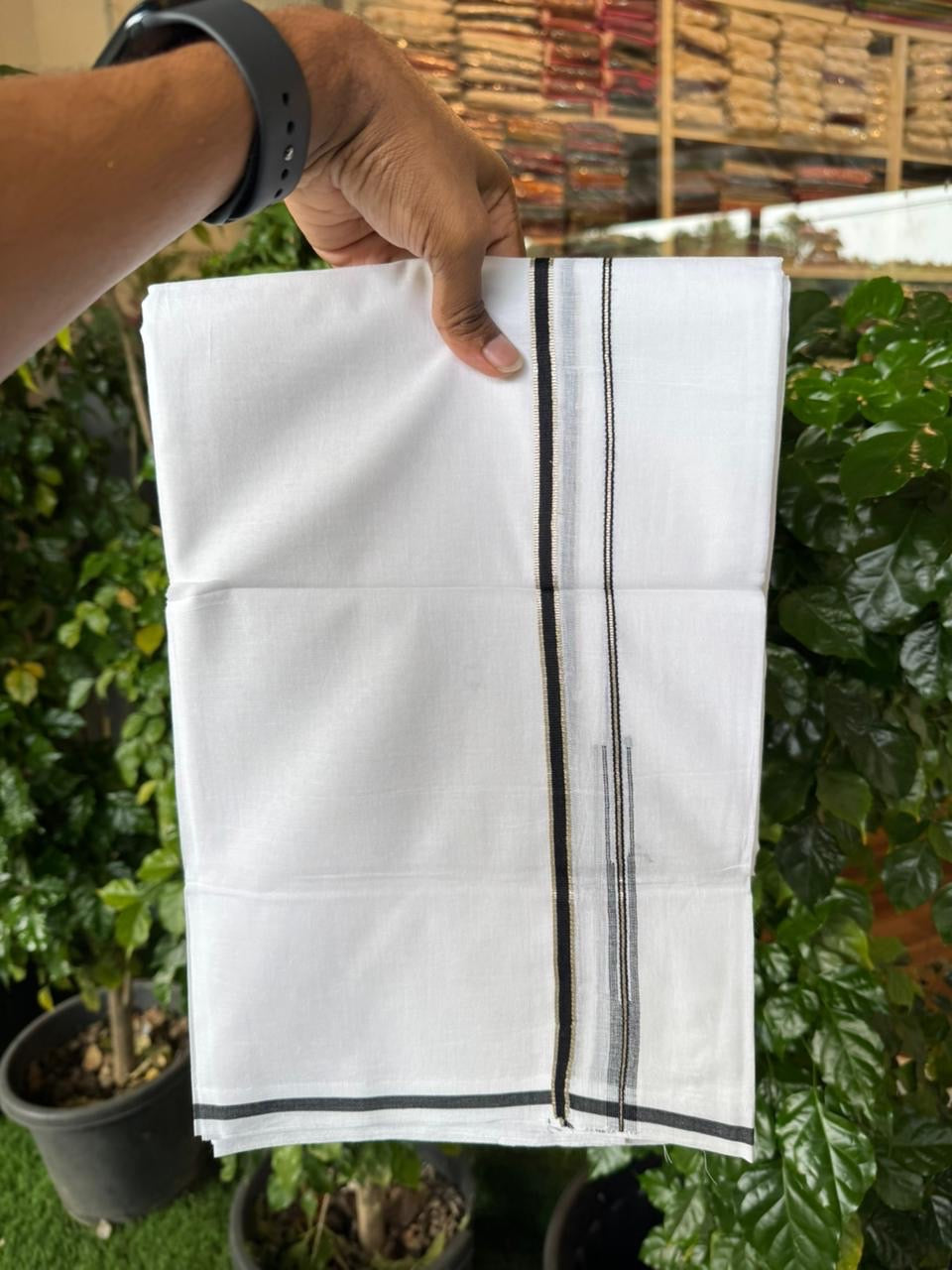 20% Discount ! Kaitharikada Balaramapuram 100% Cotton Pure White Double Mundu/Dothi - 100x80 - 1 cm Puliyilakkara Silver Kasav & Black Chutty Kara 4 mtr (8.5 muzham) - 62 KK5255 VAS