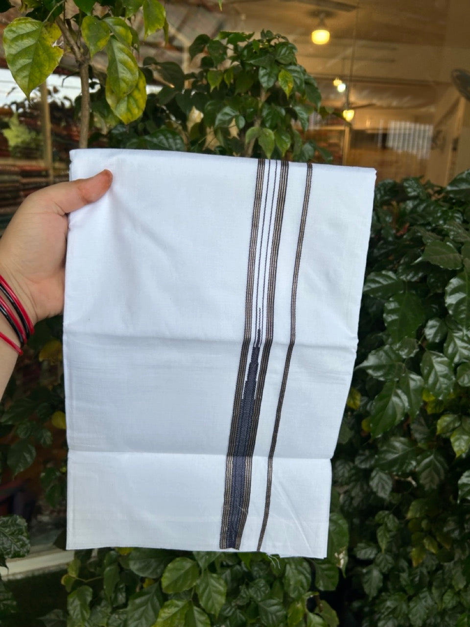 20% Discount ! Kaitharikada Balaramapuram 100% Cotton Pure White Double Mundu/Dothi - 100x80 - 1 inch Puliyilakkara Silver Kasav & Navy Blue One Side Chutty Kara 3.90 mtr (8 muzham) - 82 KK5285 VAS