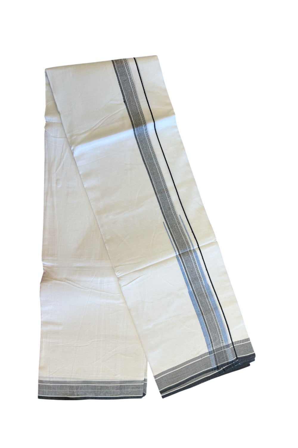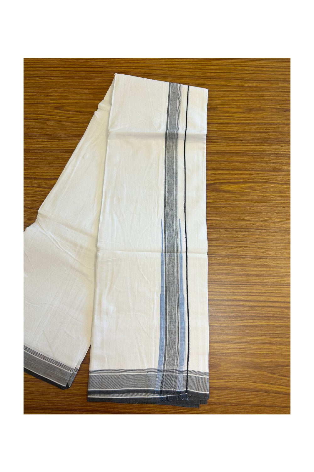 20% DISCOUNT!! Kaitharikada Balaramapuram 100% Cotton PURE WHITE Double Mundu/Dothi-80X90 - 1.75 Inch Light Blue & Black Striped Chutty Kara 3.70m (8 Muzham) - 50KK5115THI