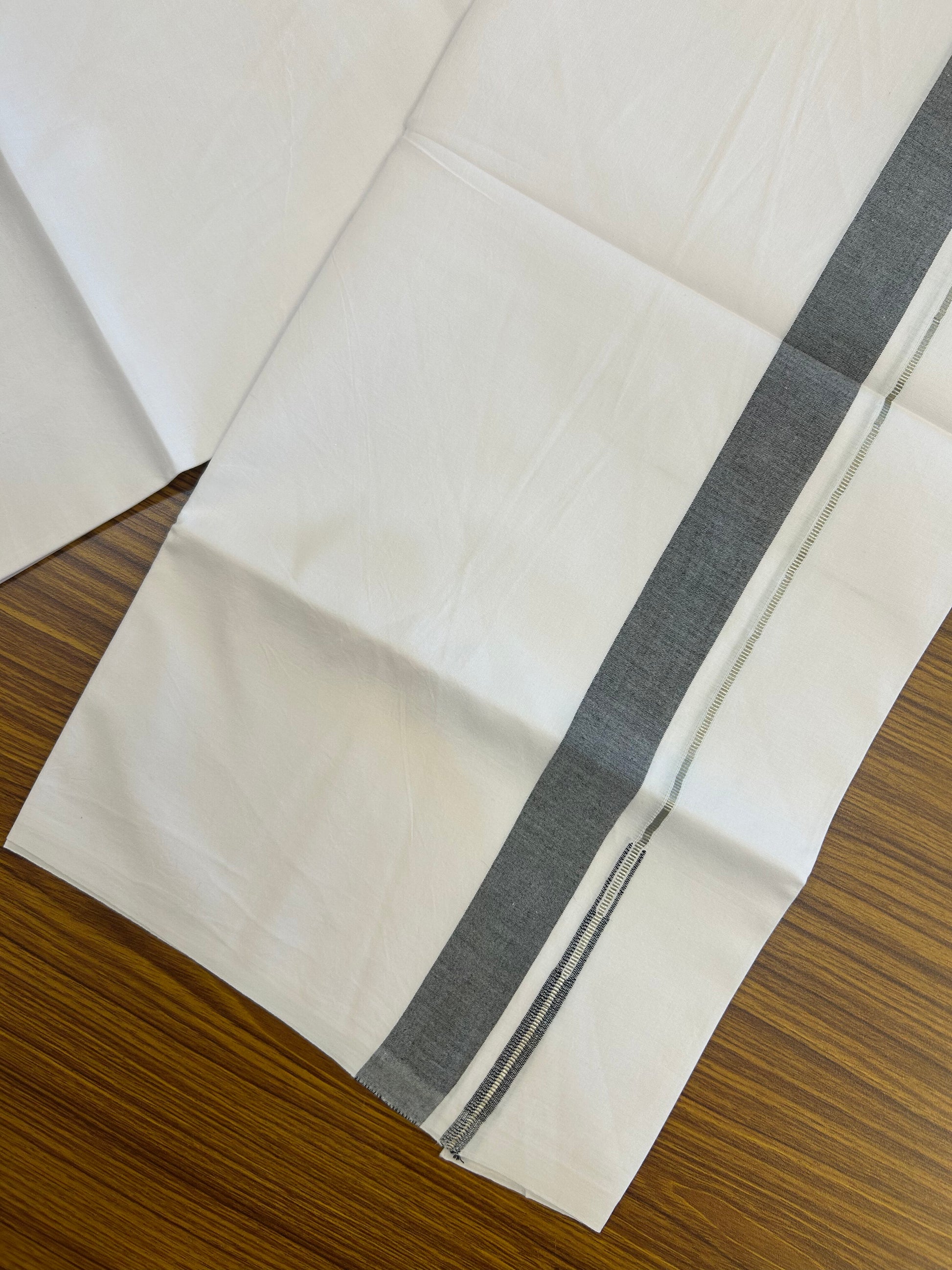 20% Discount!! KaithariKada Balaramapuram 100% Cotton Pure White Single Mundu/Dhoti - 100x100 - 1 inch Silver kasav & Black Shaded Puliyilakkara chutty (2 meter / 4 muzham) - 6 KK5371 ASH