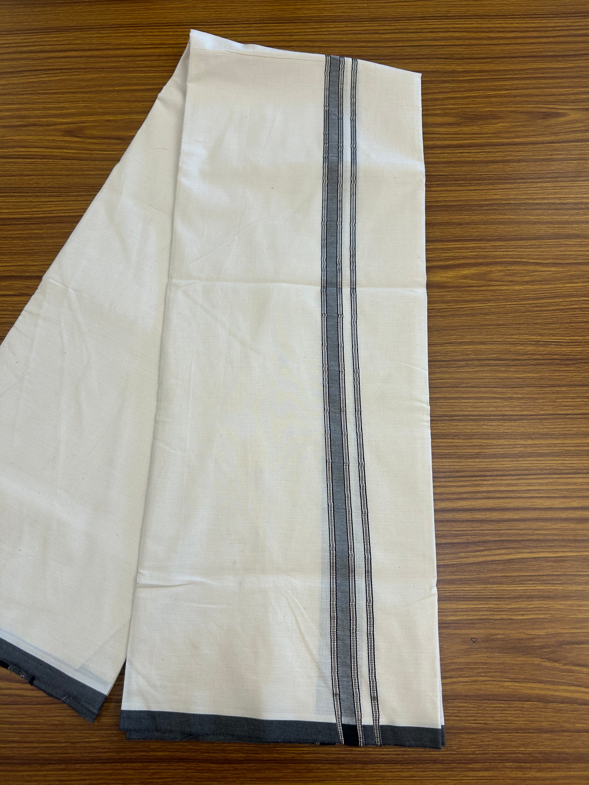 20% Discount!! KaithariKada Balaramapuram 100% Cotton Single Off white (Unbleached) Mundu/Dhoti- Twisted 100s Thread - 2 cm Silver Kasav & Black Kara (2 meter / 4 muzham) - 2 KK5346 ASH