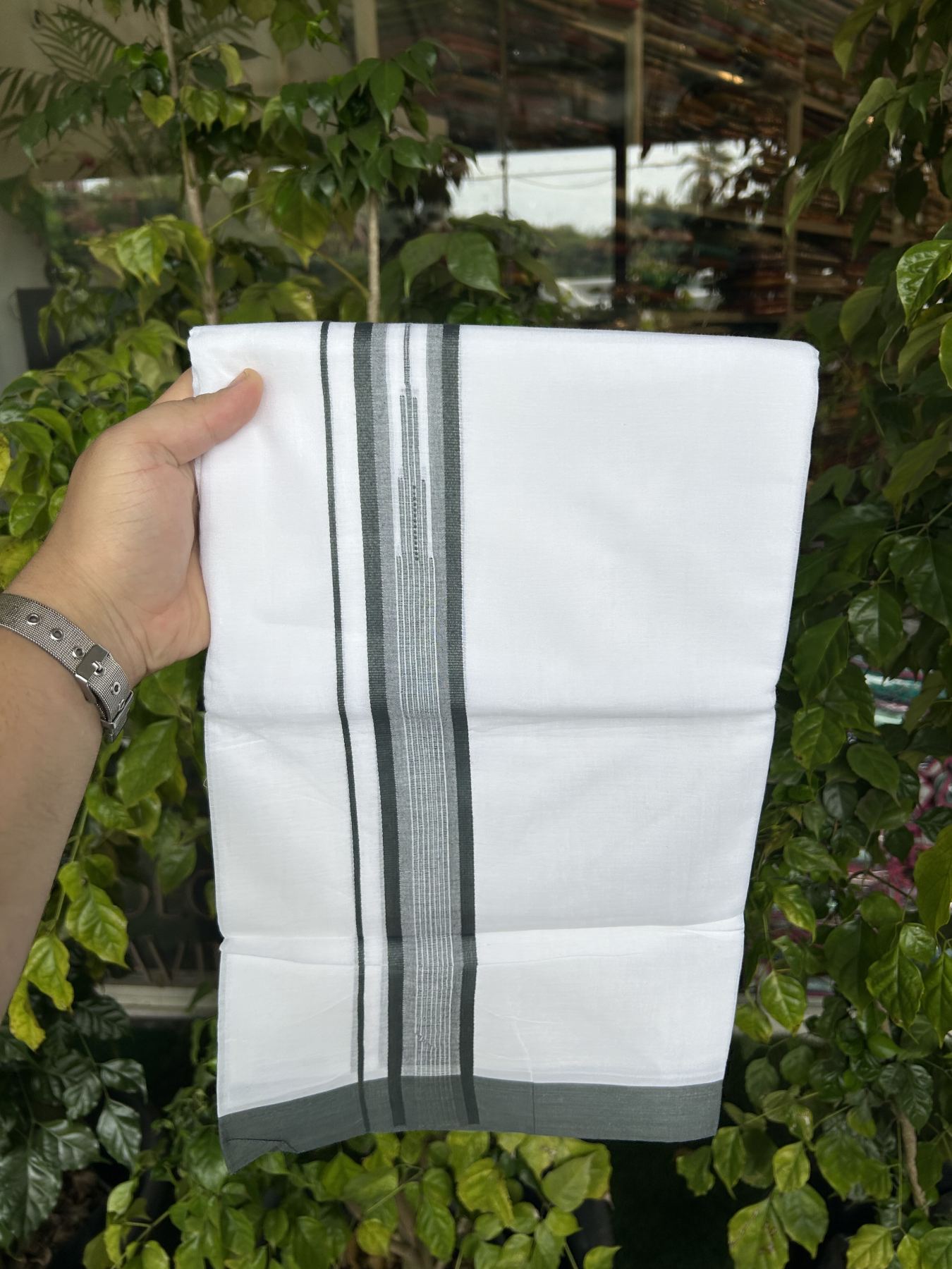 20% Discount ! Kaitharikada Balaramapuram 100% Pure Cotton Double Pure White Mundu/Dhoti - 100x80 - 1.75 inch Deep Teal Green Shaded Striped Chutty 3.90 mtr (8 muzham) - 26 KK5312 PMC