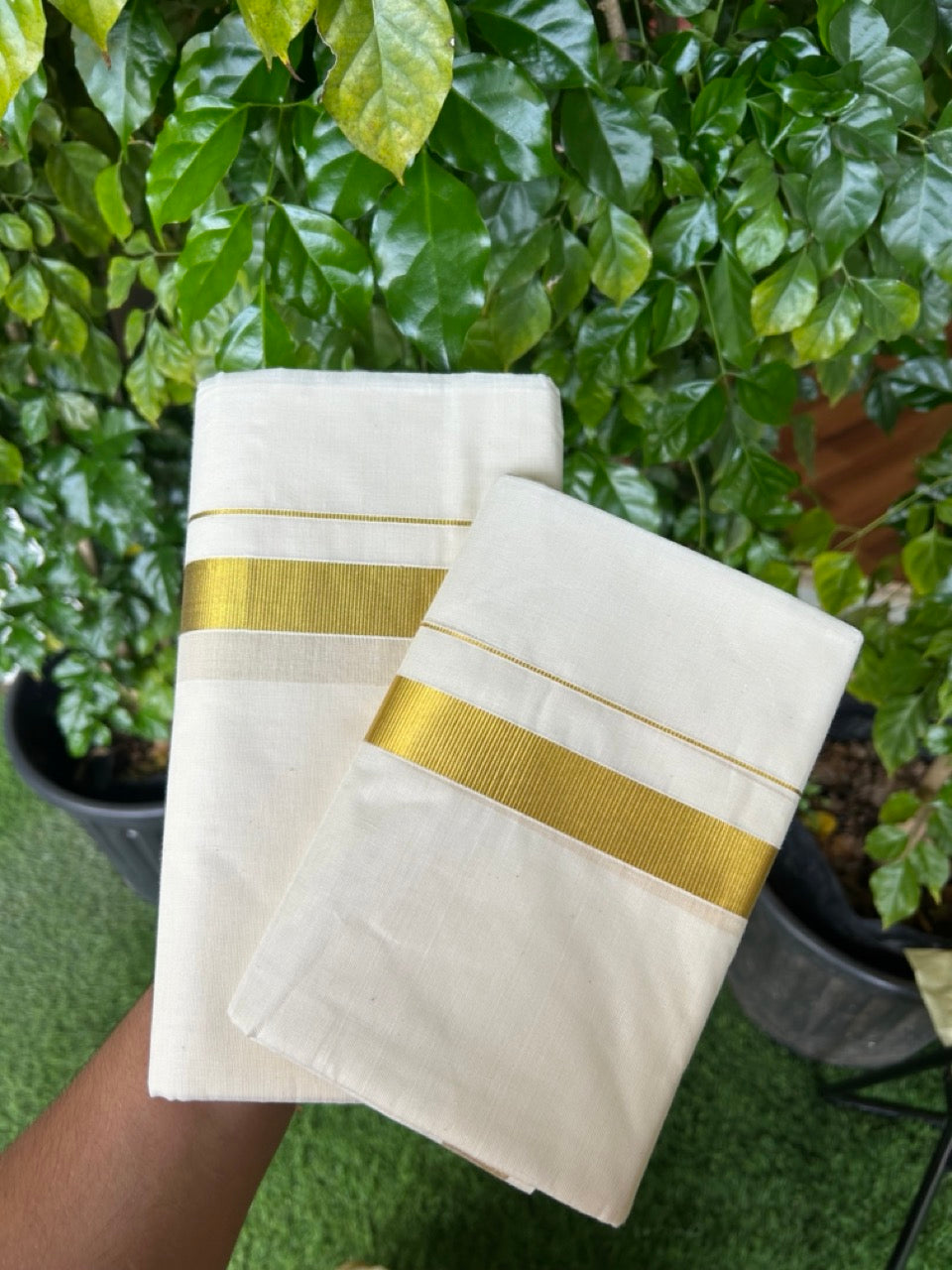 20% Discount!! KaithariKada Balaramapuram - 100% PURE Cotton Off White (Unbleached) Mundu/Dhoti & Neriyath set - 1 Inch Kasavu Kara - 3KK5213 VIN