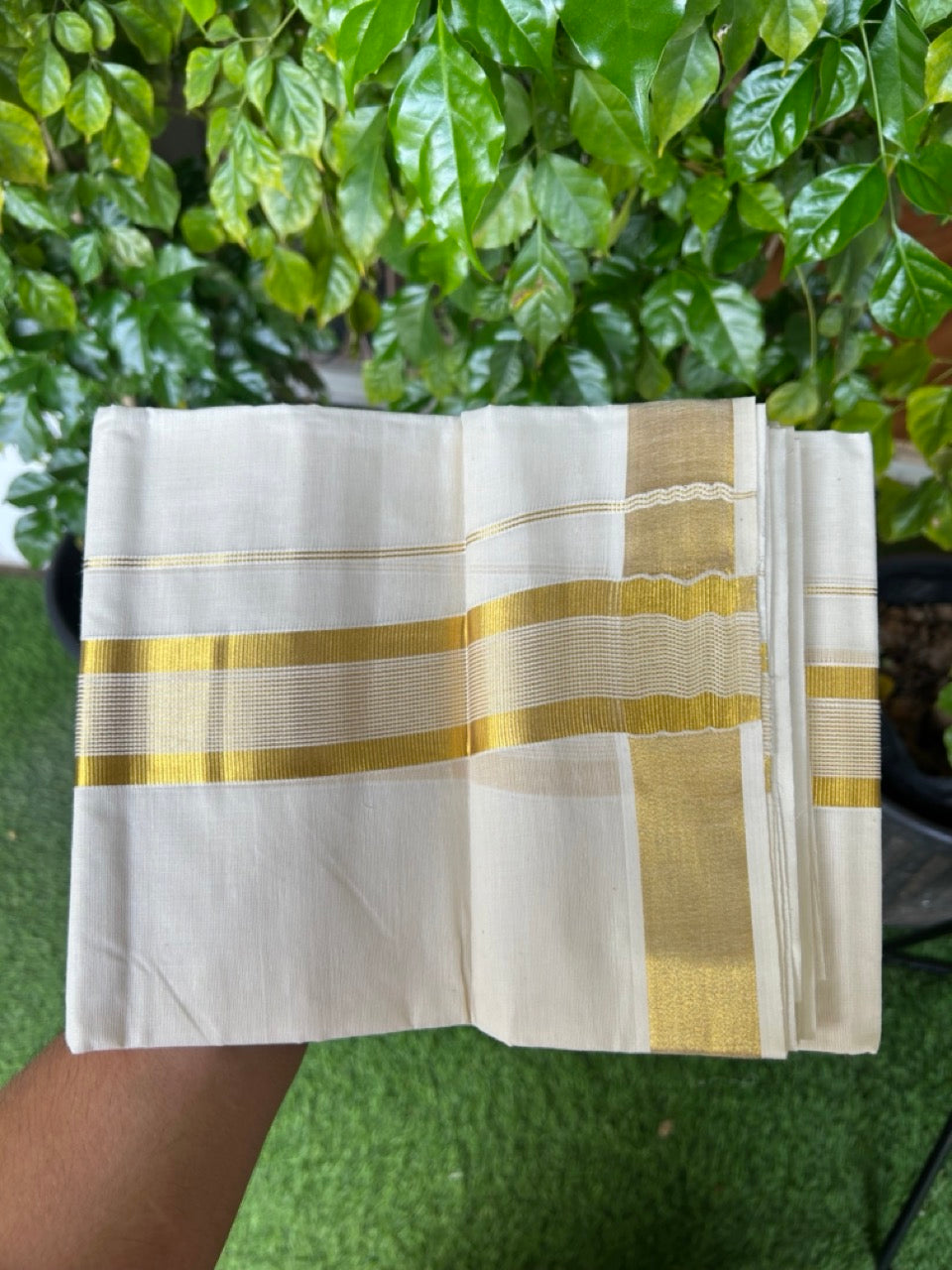 20% Discount!! KaithariKada Balaramapuram - 100% PURE Cotton OFF WHITE (Unbleached) Neriyath - 1.75 Inch Kasavu Stripes Kara - 5KK5215 VIN