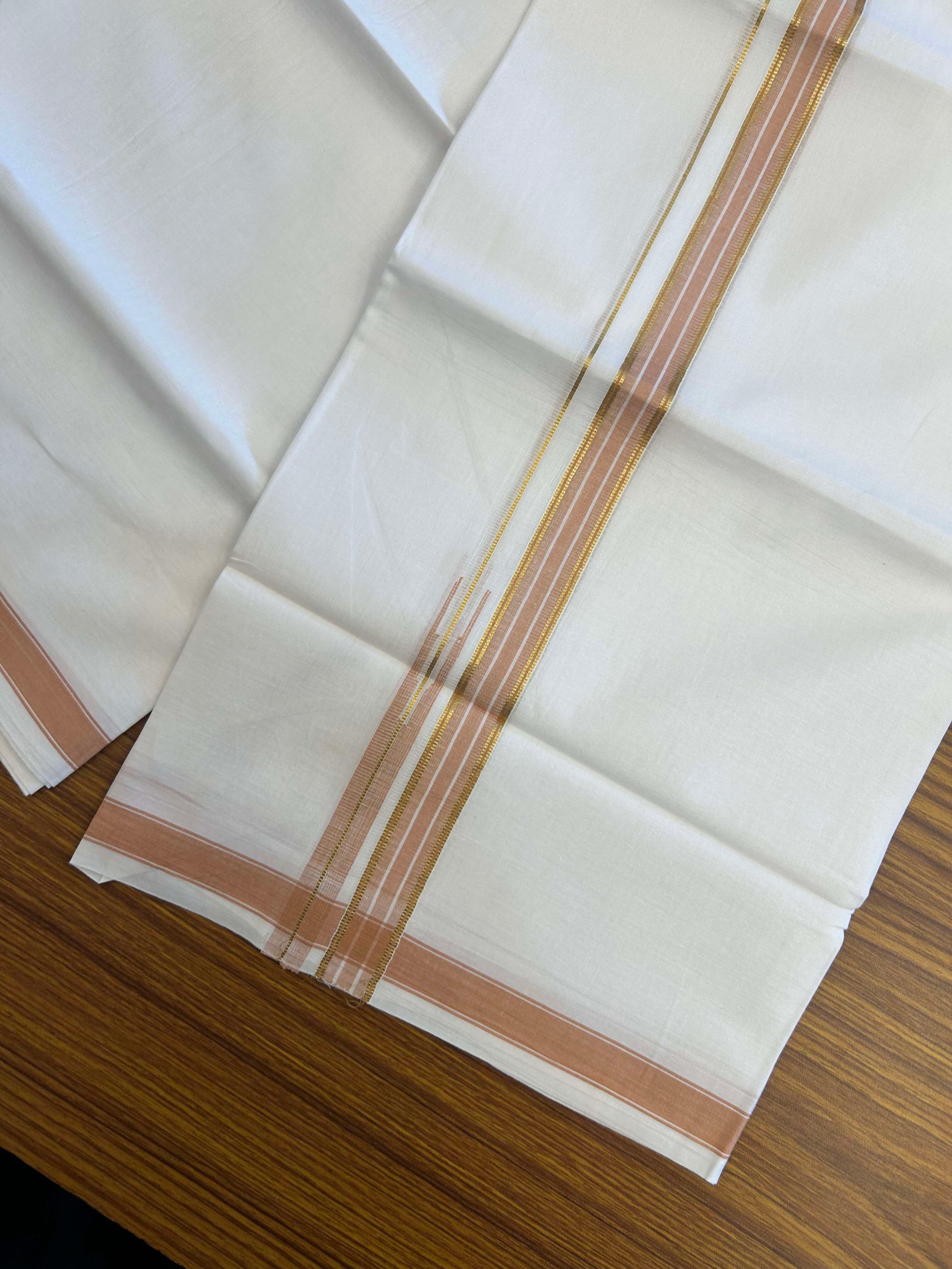 20% Discount!! Kaitharikada Balaramapuram 100% Pure Cotton Pure White Double Mundu/Dothi - 100x80 - 1.5 cm Light Orange & Gold Kasav Puliyilakkara One Side Chutty Kara 3.90 m (8 muzham) - 32 KK5310 CKS