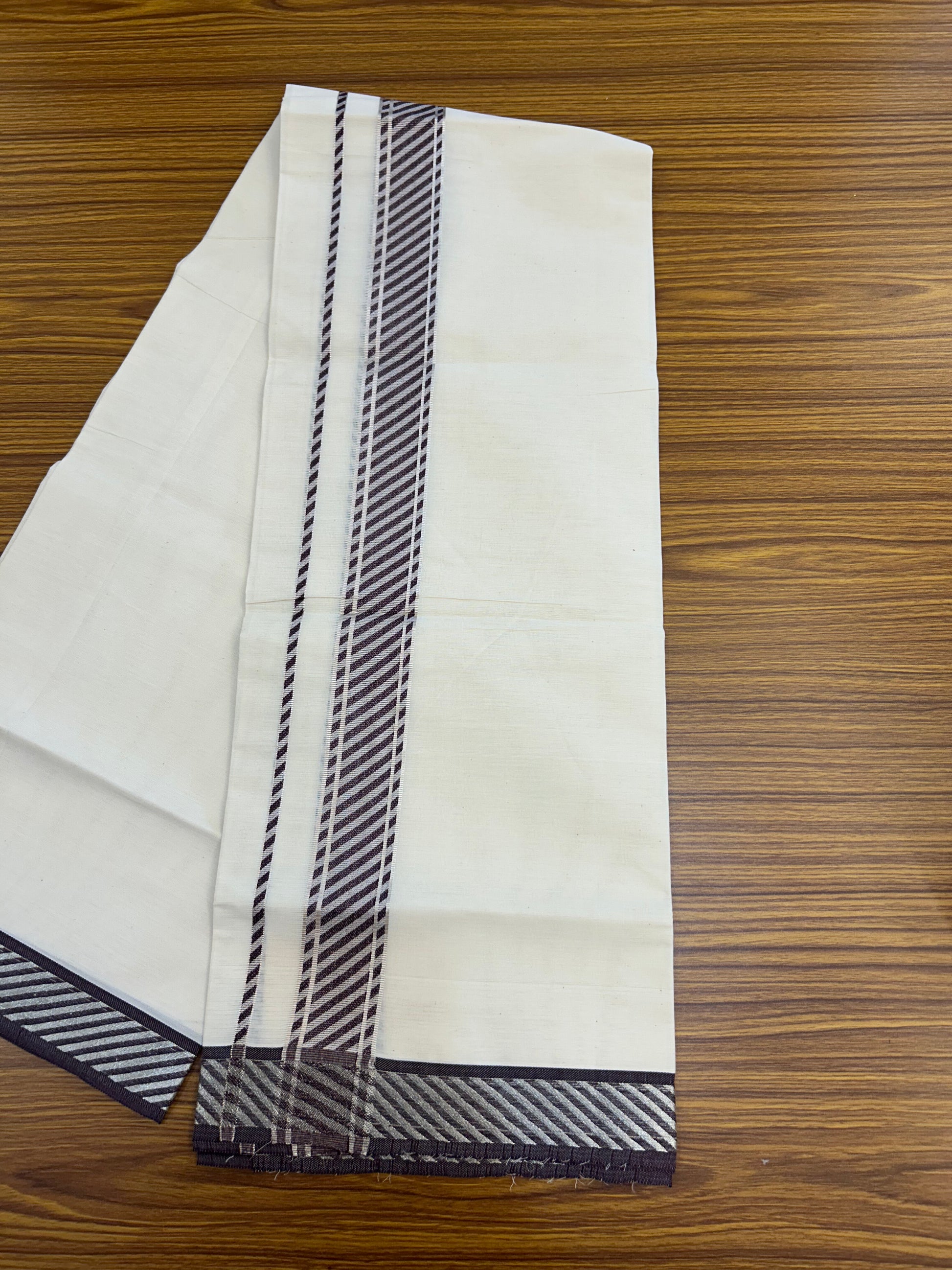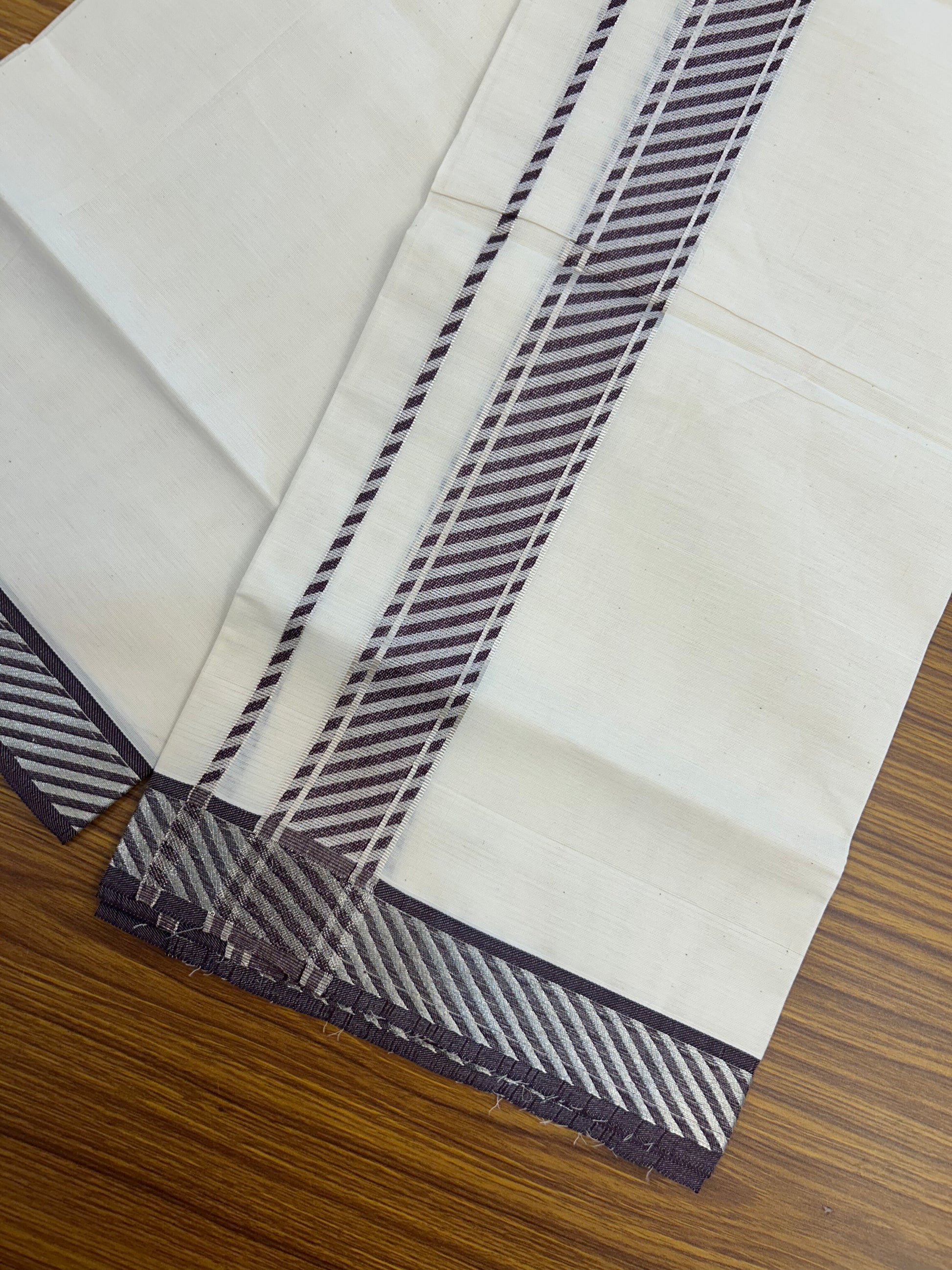20% Discount ! KaithariKada Balaramapuram 100% Pure Cotton Single Off White Mundu/Dhoti - 30X70 - 1.5 inch Silver Kasav & Wine Purple Jacquard Design kara 2 mtr (4 Muzham) - 5 KK5327 CJT