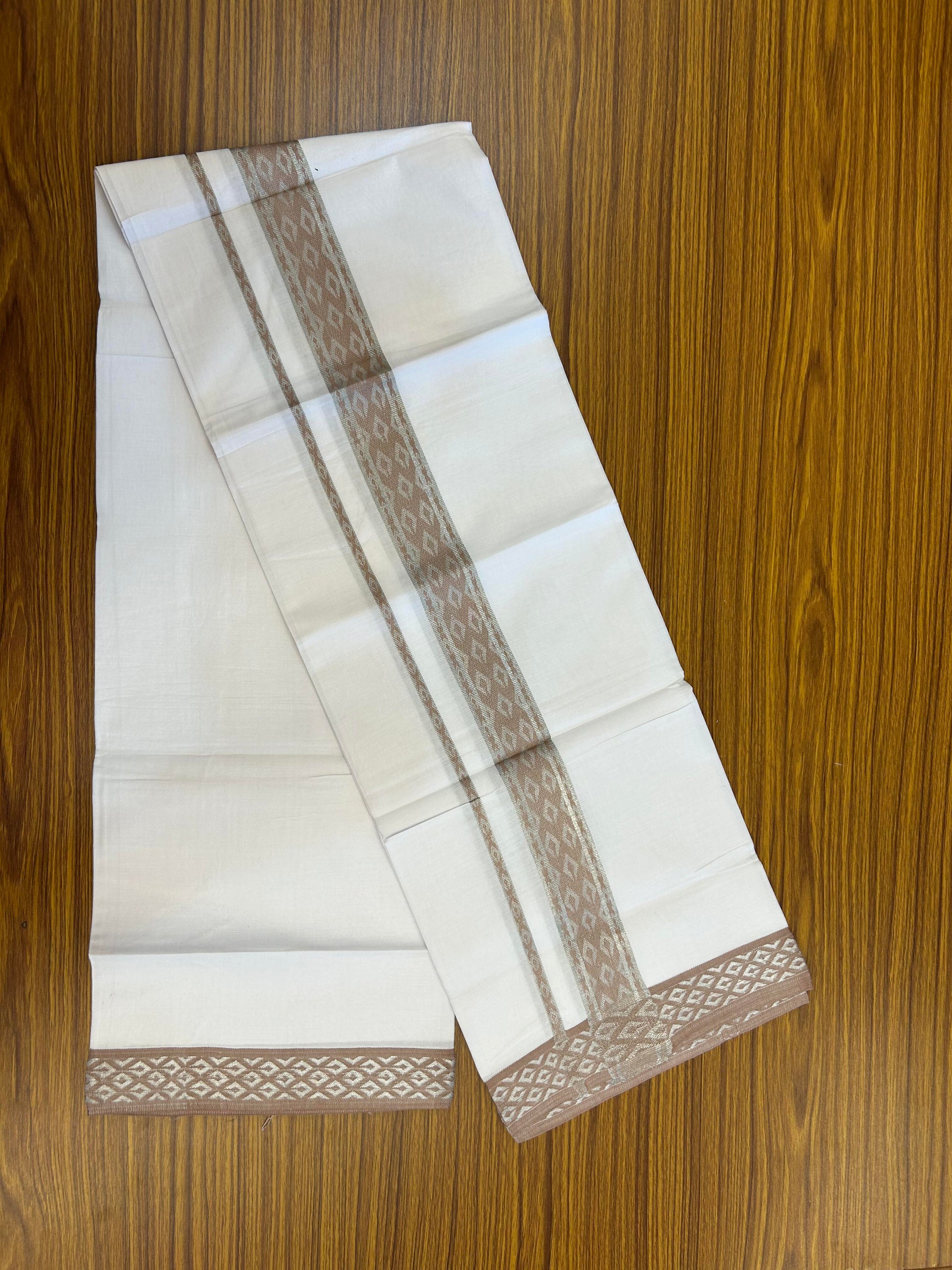 20% Discount ! KaithariKada Balaramapuram 100% Pure Cotton Single Pure White Mundu/Dhoti - 70X30 - 1.75 inch Silver Kasav & Dusty Peach Jacquard Design kara 1.90 mtr (4 Muzham) - 10 KK5360 CJT