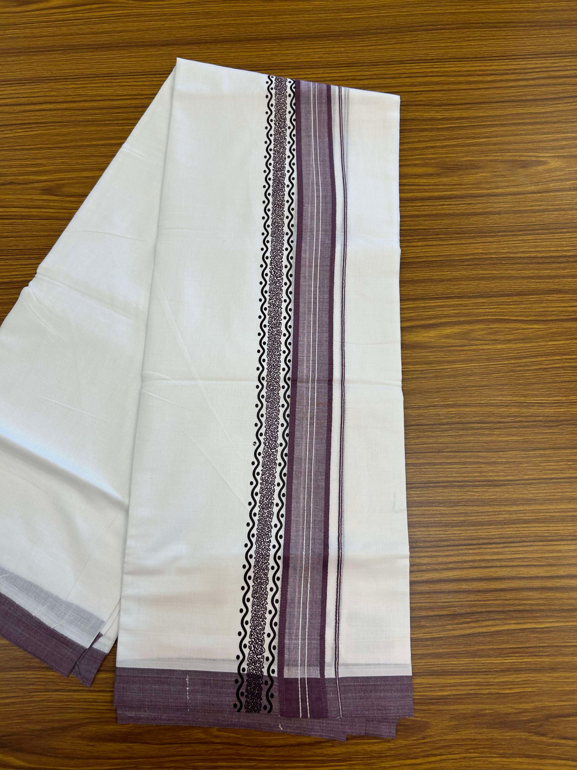 20% Discount ! KaithariKada Balaramapuram Cotton Double Pure white Mundu/Dhoti- 60s - 2.5 inch Purple Printed Shaded Stripes Design Kara - 3.65 mtr (8 muzham) - 30 KK5309 GAN