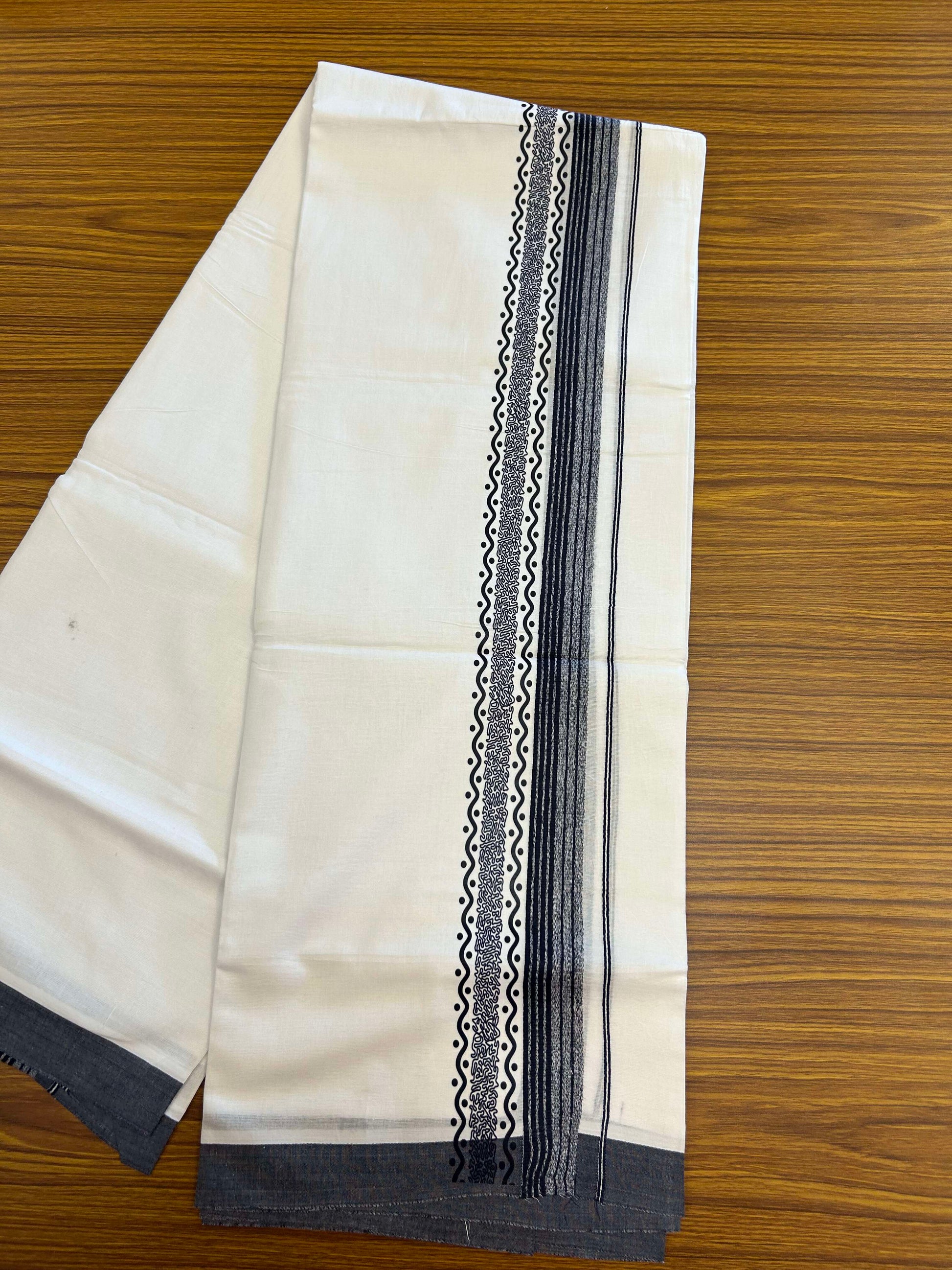20% Discount ! KaithariKada Balaramapuram Cotton Double Pure white Mundu/Dhoti- 60s - 2.5 inch Navy Blue Printed Shaded Stripes Design Kara - 3.65 mtr (8 muzham) - 26 KK5309 GAN
