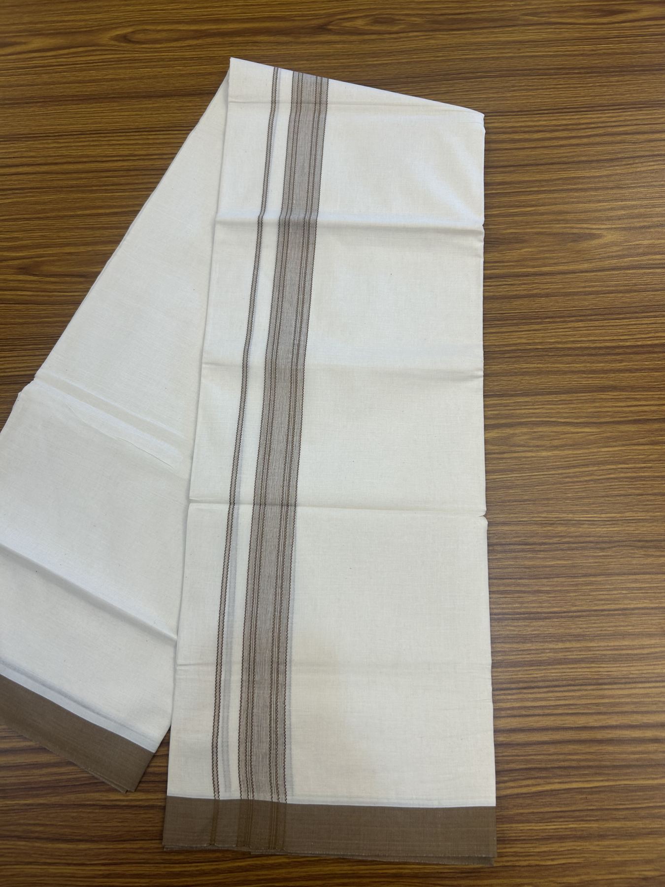 20% Discount! Kaitharikada Balaramapuram Double Off White Mundu/Dhoti -100x80 - 1.25 Inch Caramel Brown Shaded Stripes Kara 4 mtr (8.5 muzham) - 12 KK5311 VAS