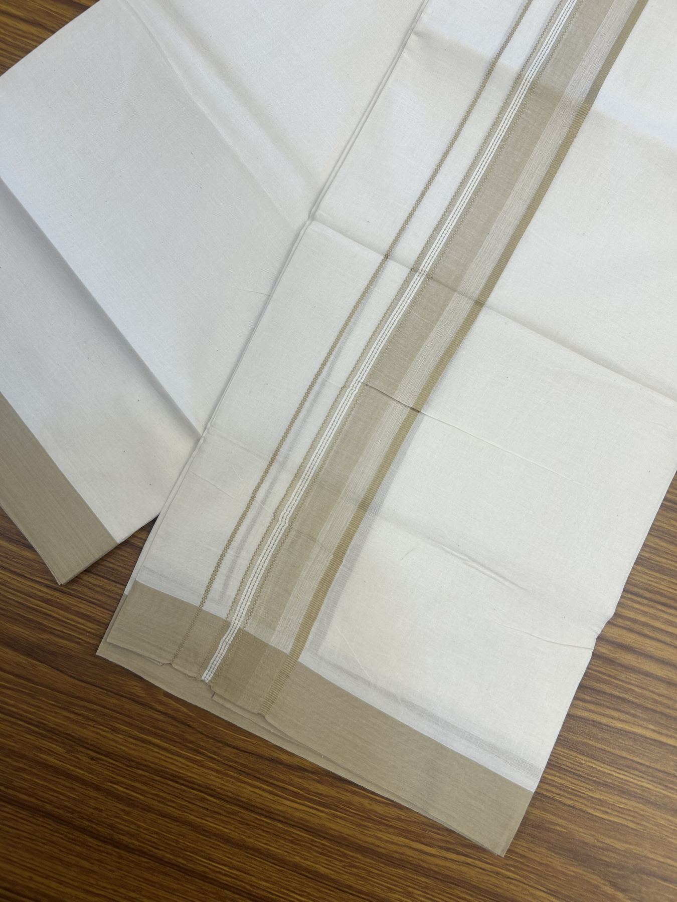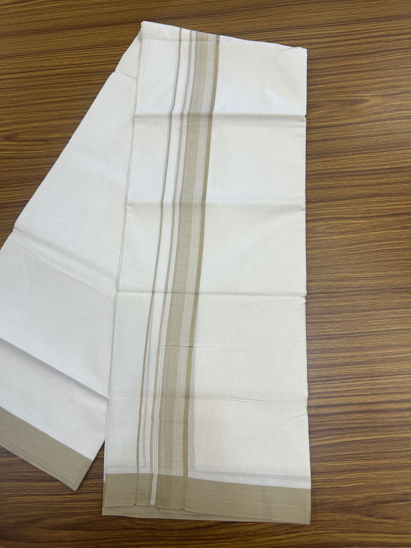 20% Discount! Kaitharikada Balaramapuram Double Off White Mundu/Dhoti -100x80 - 1.5 Inch Sand Brown Stripes Kara 4 mtr (8.5 muzham) - 9 KK5311 VAS