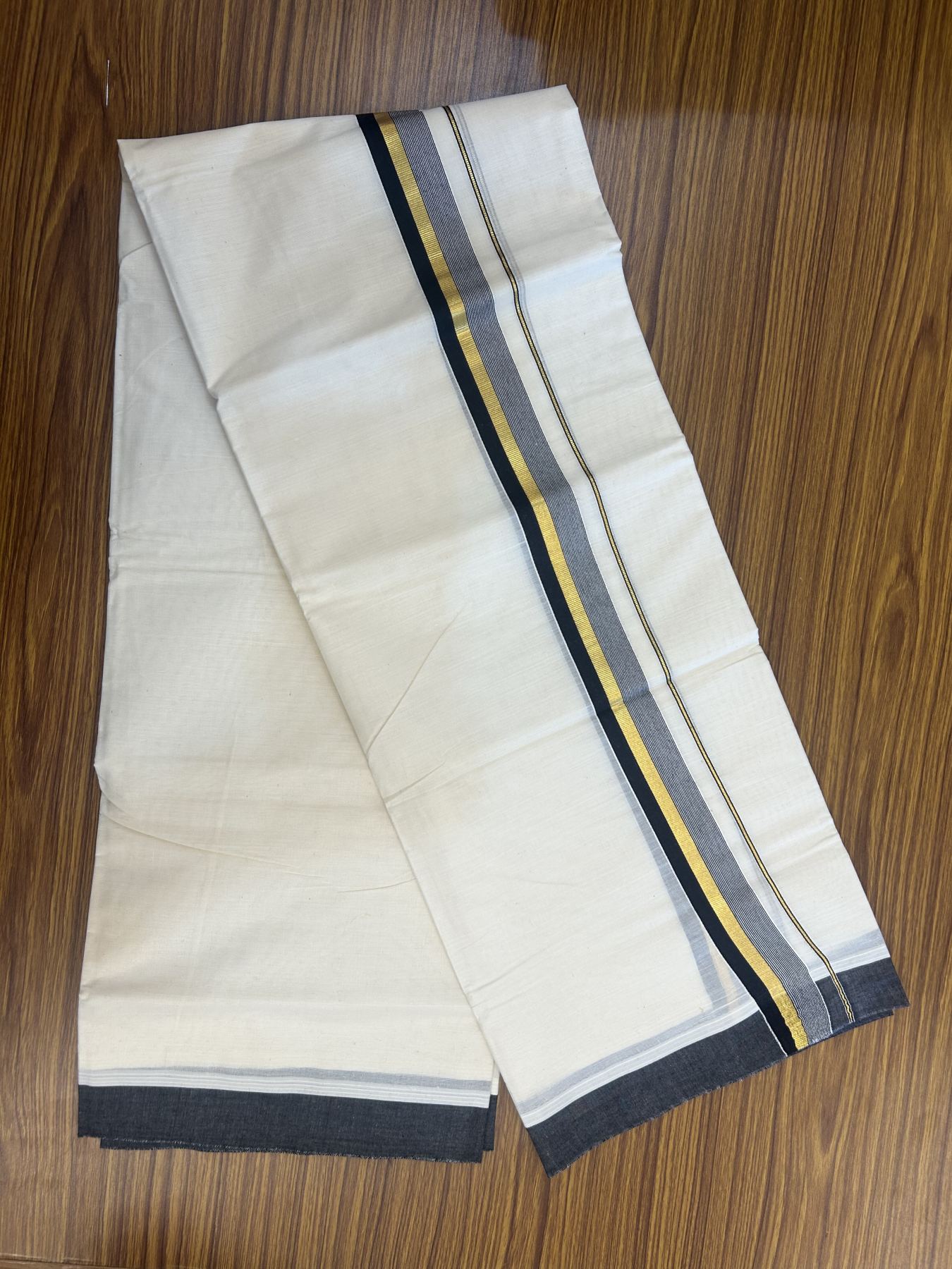 20% Discount! Kaitharikada Balaramapuram Double Off White Mundu/Dhoti - 80s - 1.25 Inch Gold Kasav & Black Stripes Kara 4 mtr (8.5 muzham) - 5 KK5311 VAS