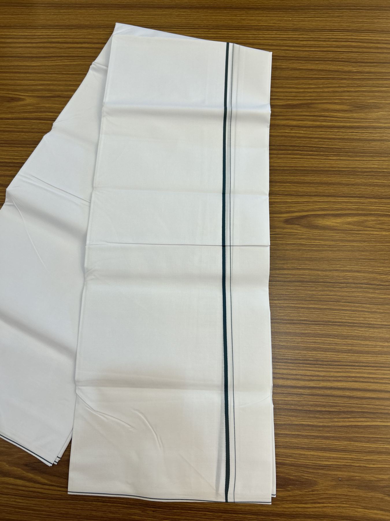 20% Discount !! KaithariKada Wrinkle Free Mercerised Cotton Pure White Single Mundu/Dhoti- (40s) - 0.25 cm Dark Peacock Blue Kara (2 meter / 4 muzham) - 22 KK5336 UAT