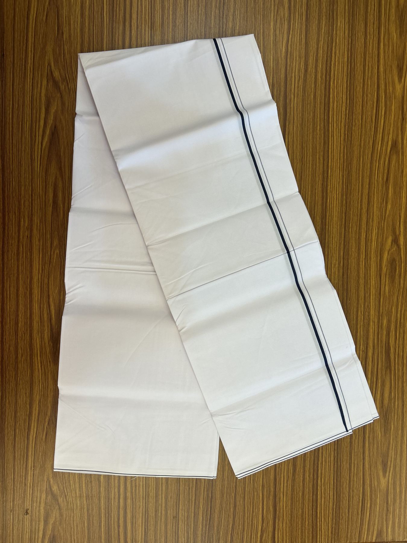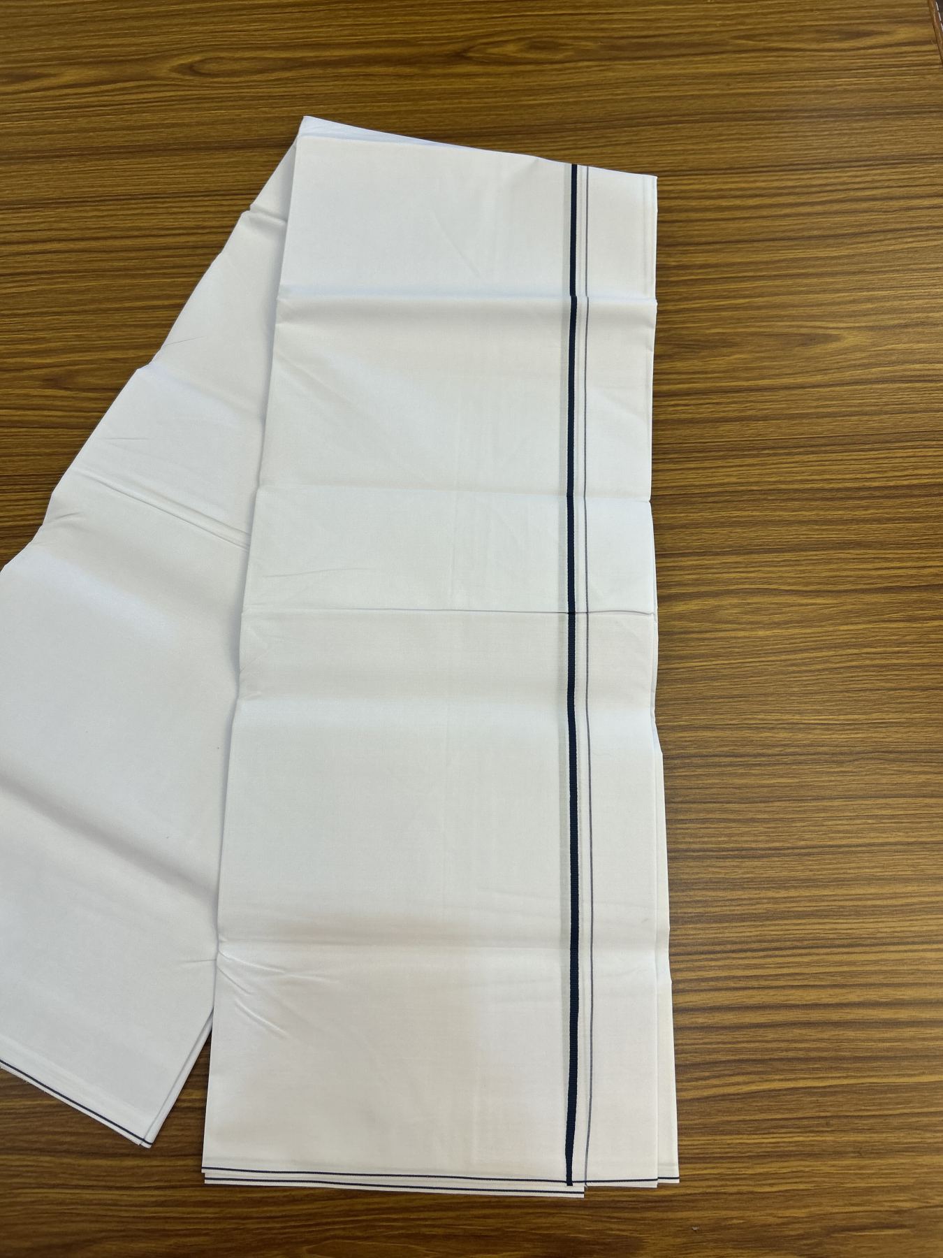 20% Discount !! KaithariKada Wrinkle Free Mercerised Cotton Pure White Single Mundu/Dhoti- (40s) - 0.25 cm Dark Blue Kara (2 meter / 4 muzham) - 21 KK5336 UAT