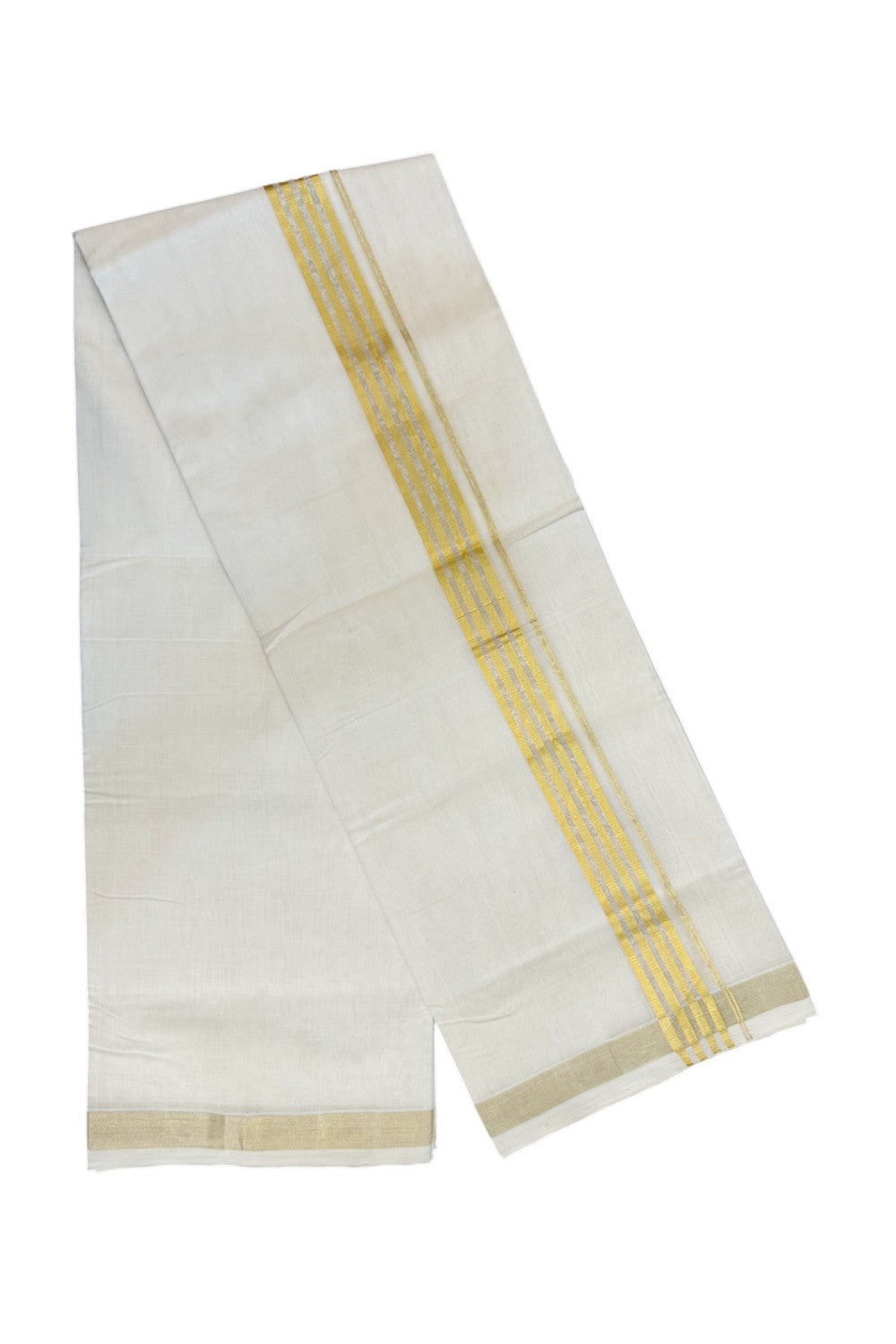 25% Discount!!! KaithariKada HANDLOOM UNAKKUPAAV Balaramapuram - 100% PURE Cotton OFF WHITE (Unbleached) Double Mundu/Dhoti - 80x90 - 3.5 cm Kasavu striped kara 3.85 Mtr (8 Muzham) - 11KK5235 YAR