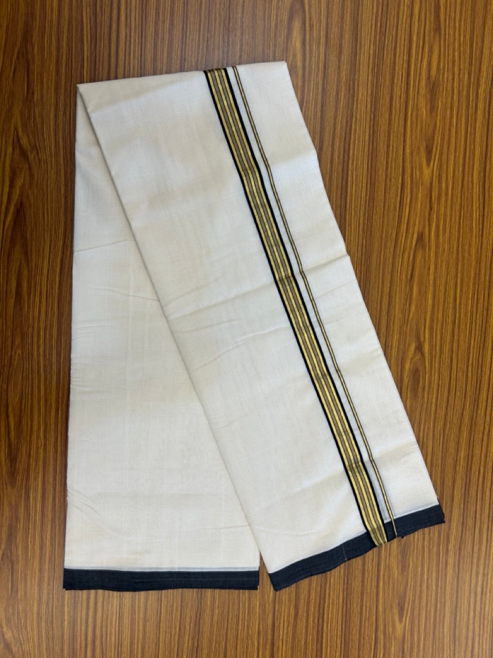 25% Discount ! Kaitharikada Handloom Unakkupaav Balaramapuram - 100% Pure Cotton Off White - (Unbleached) Double Mundu/Dhoti - 100x80 - 1.25 inch Gold Kasav & Black Striped Kara 4 mtr (8.5 Muzham) - 11 KK5307 SAS