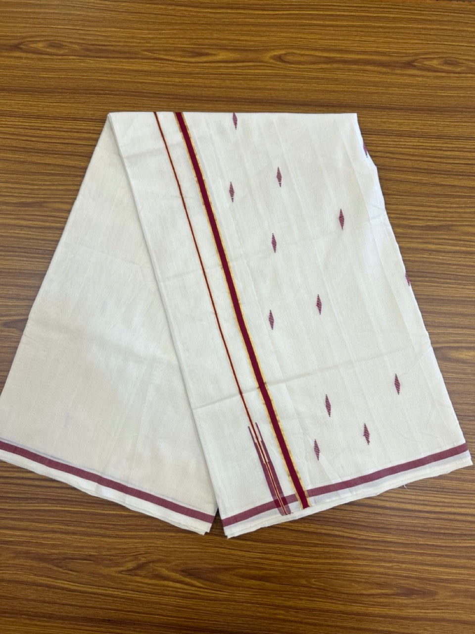 25% Discount KaithariKada Handloom Unakkupaav Balaramapuram Kerala Saree for Women- 100% PURE COTTON - Puliyilakkara Gold Kasav & Maroon Red Chutty KARA - 4 KK7154 UDA