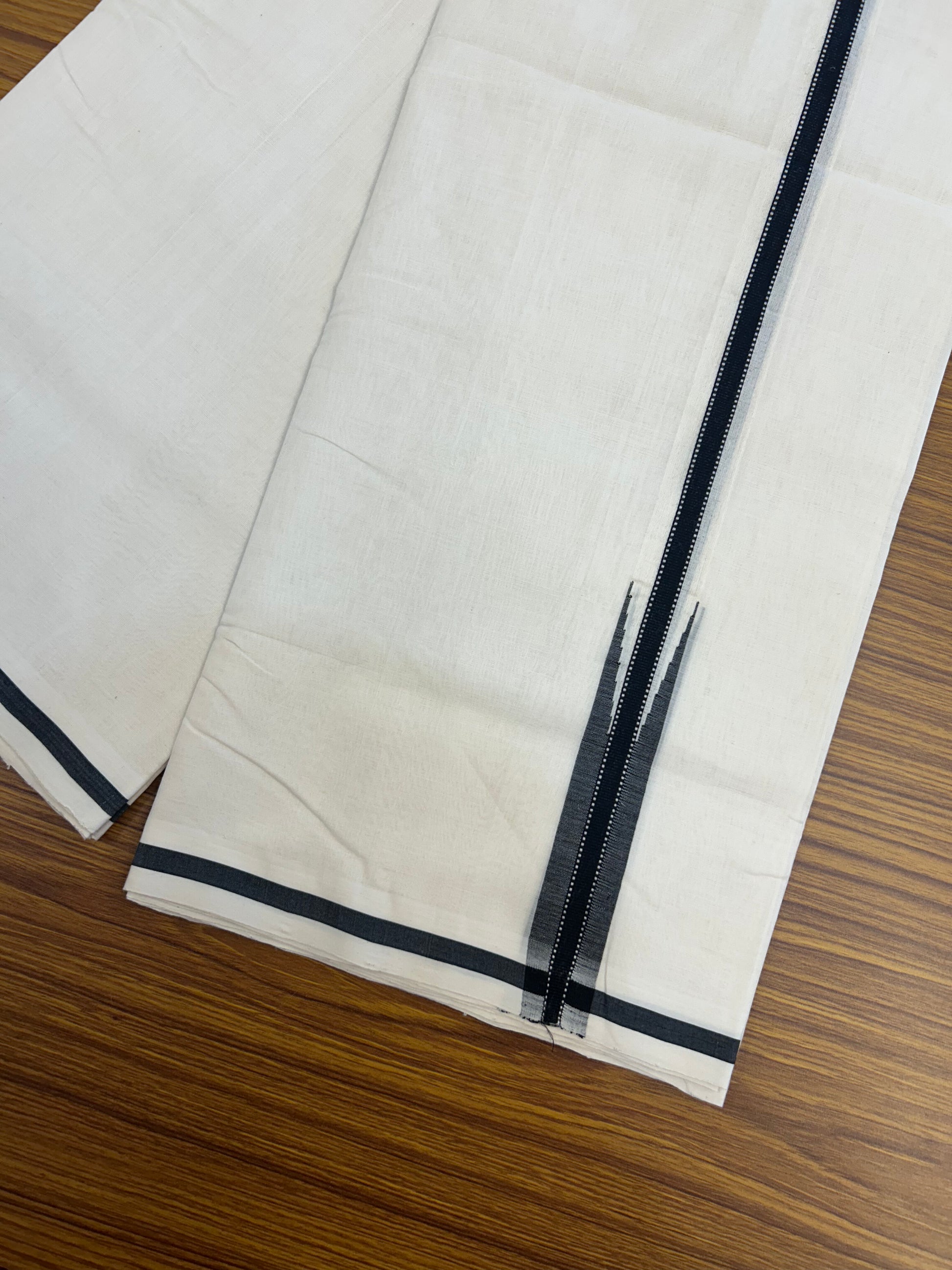 25% Discount!! KaithariKada Handloom Unakkupaav - Kerala Handloom - 100% Pure Cotton Off White - (Unbleached) Double Mundu/Dothi - 100x80 - 1 inch Puliyilakkara Black Chutty Kara 4 mtr (8.5 muzham) - 50 KK5353 REA