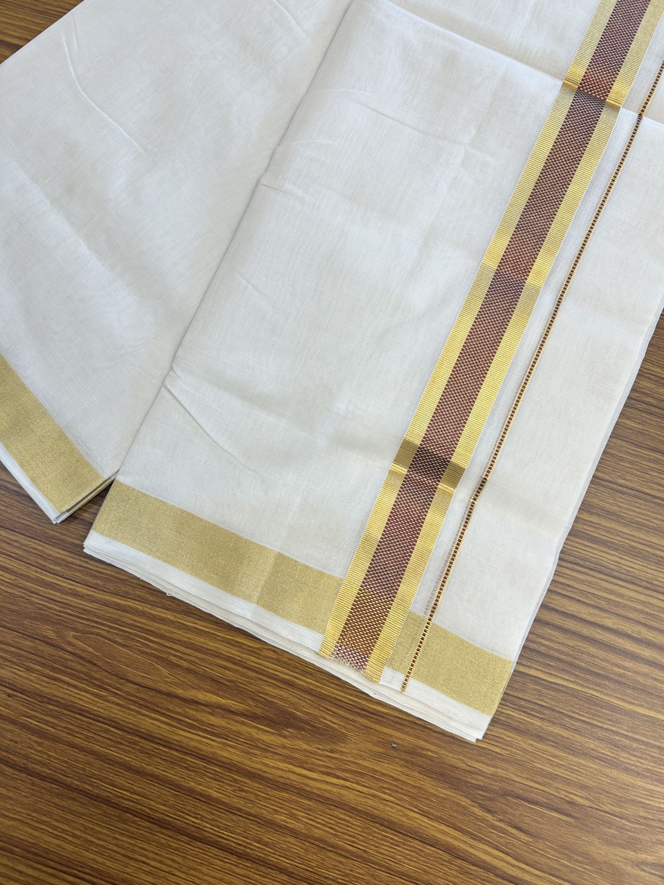25% Discount ! KaithariKada Handloom Unakkupaav Kerala Handloom - Pure Cotton Off White - (Unbleached) Double Mundu/Dhoti - (100X80) - 1.5 inch Gold Kasav & Maroon Jacquard Design Kara - 4 mtr (8.5 Muzham)- 17 KK5342 ABH