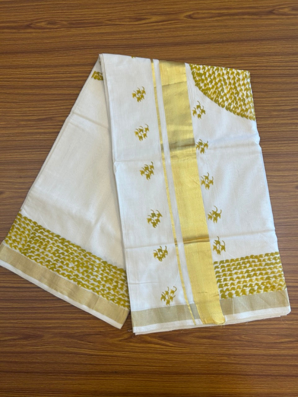 Kaitharikada Kerala Saree - Cotton Off white - Kasavu with Hand Painted Design - 8KK1006KK