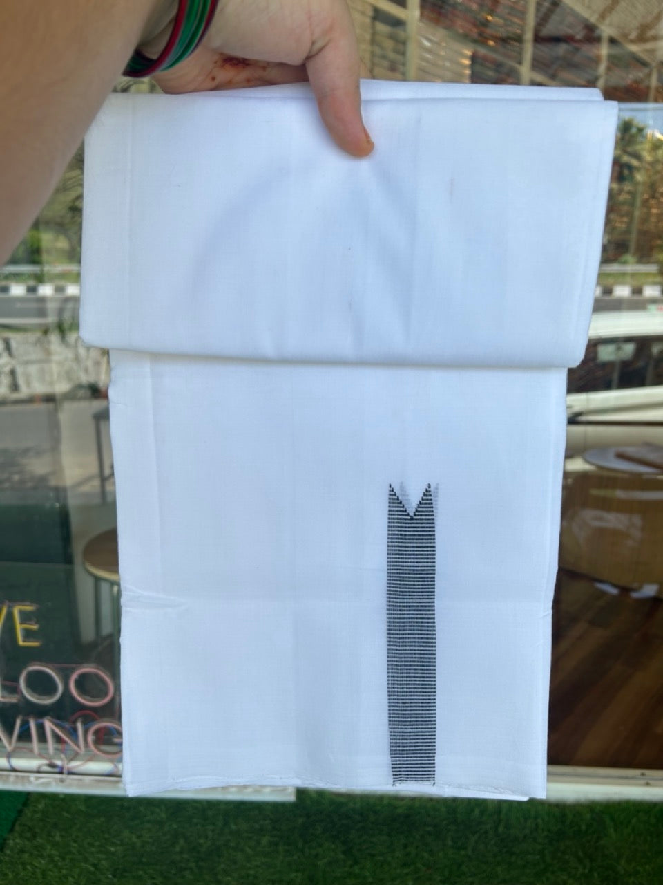 25% Discount!! NEW ULTRA PURE WHITE HANDLOOM Balaramapuram - 100% Mercerised Cotton Double Mundu/Dhoti - 120 twisted warp x 80s weft - 0.75 inch Puliyilakkara Black Striped Chutty Kara- 5KK5200REA