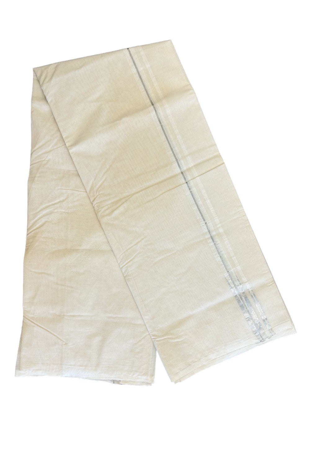 30% OFFER ! KaithariKada Balaramapuram 100% Cotton Double OFF WHITE (Unbleached) - Mundu/Dhoti-100x100 0.75INCH Puliyilakkara Chutty Silver Kasavu double chutty - 2KK466ASH